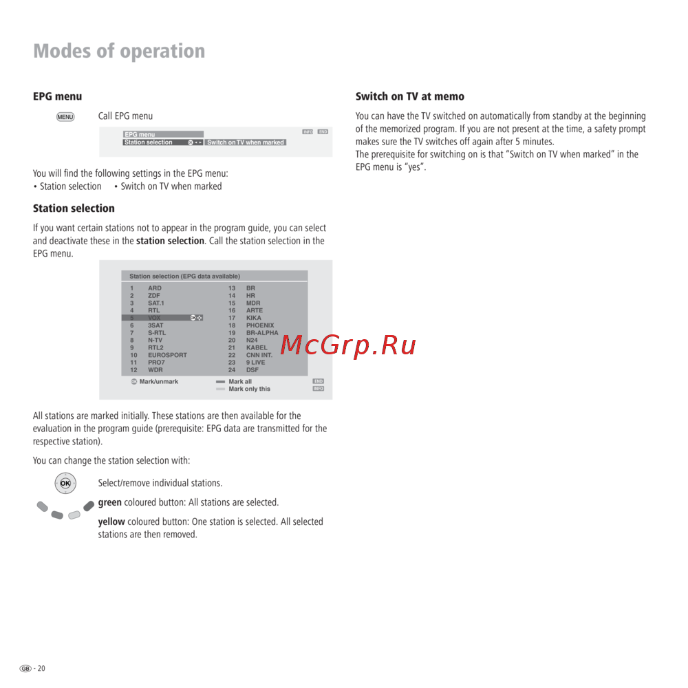 - All stations are marked initially these stations are then available for the evaluation in the program guide prerequisite epg data are transmitted for the respective station p.20
