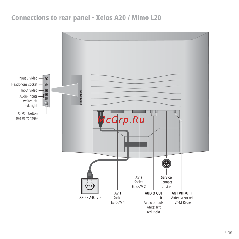 - Connections to rear panel xelos a20 mimo l20 p.5