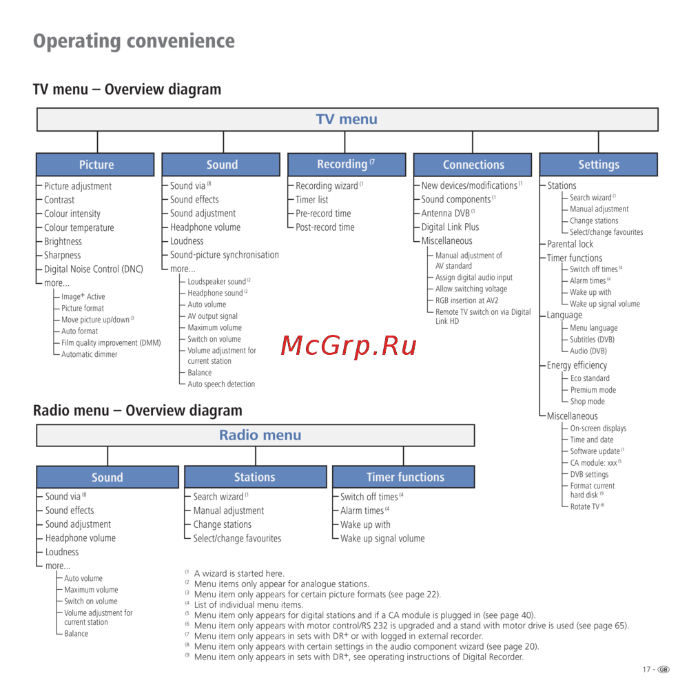 TV menu – Overview diagram