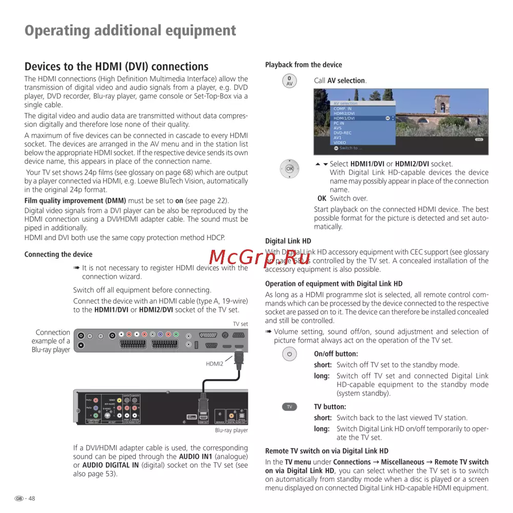 Loewe Xelos A 32 Full-HD+ 100 — подключение и использование HDMI и DVI устройств к телевизору [48/72]