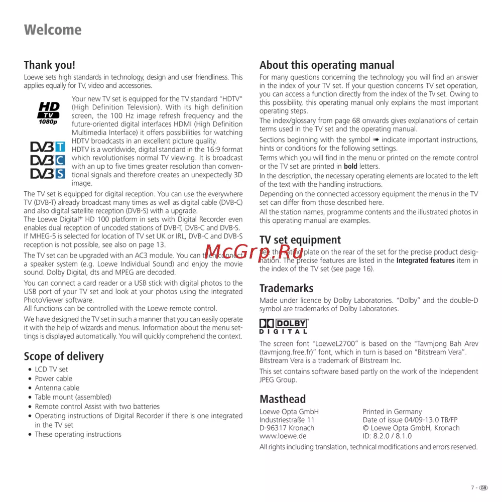 Loewe Xelos A 37Инструкция по эксплуатации -