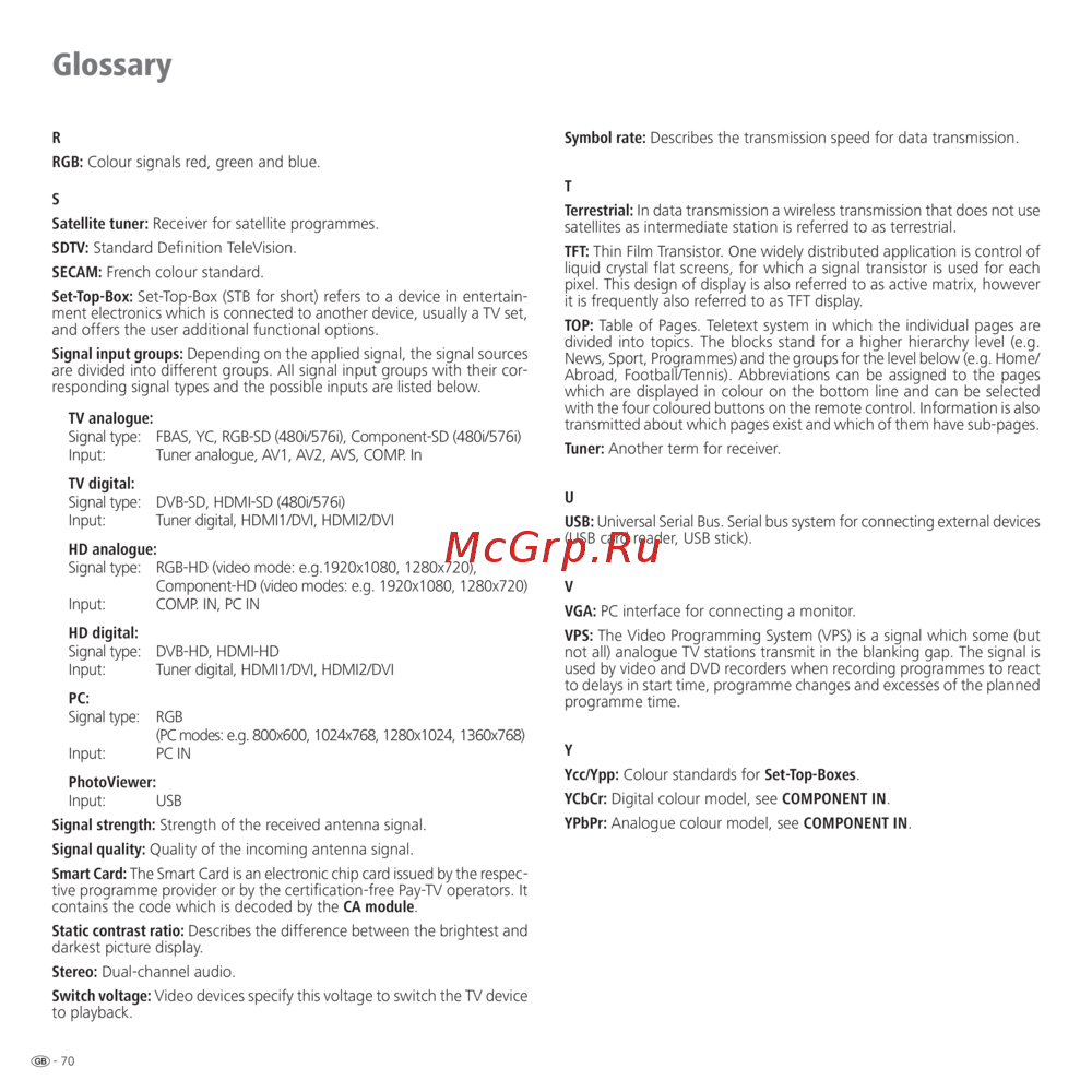 Signal type: FBAS, YC, RGB-SD (480i/576i), Component-SD (480i/576i)