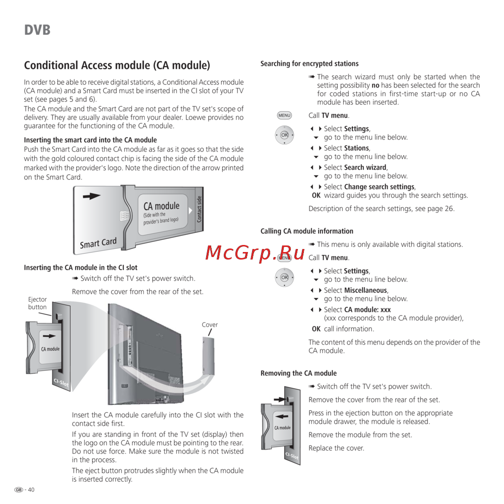(CA module) and a Smart Card must be inserted in the CI slot of your TV
