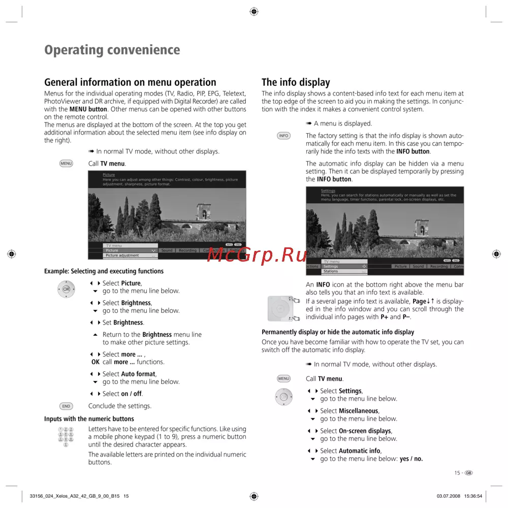Изучите, как эффективно использовать меню и настройки вашего телевизора. Узнайте о функциях, таких как автоматическое отображение информации и регулировка изображения.