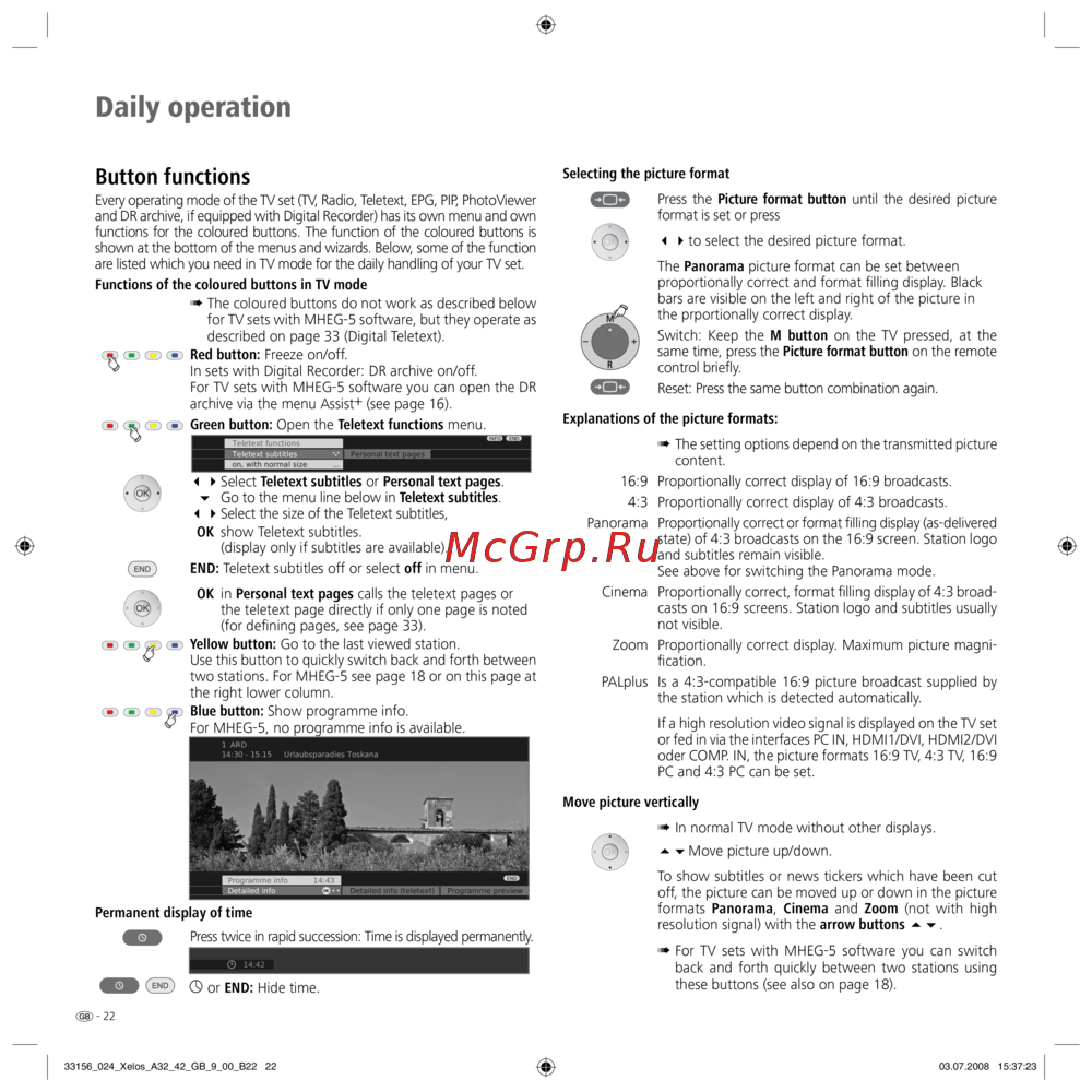 Loewe Xelos A 42 HD+ 100 — функции кнопок для ежедневного управления телевизором [22/66]