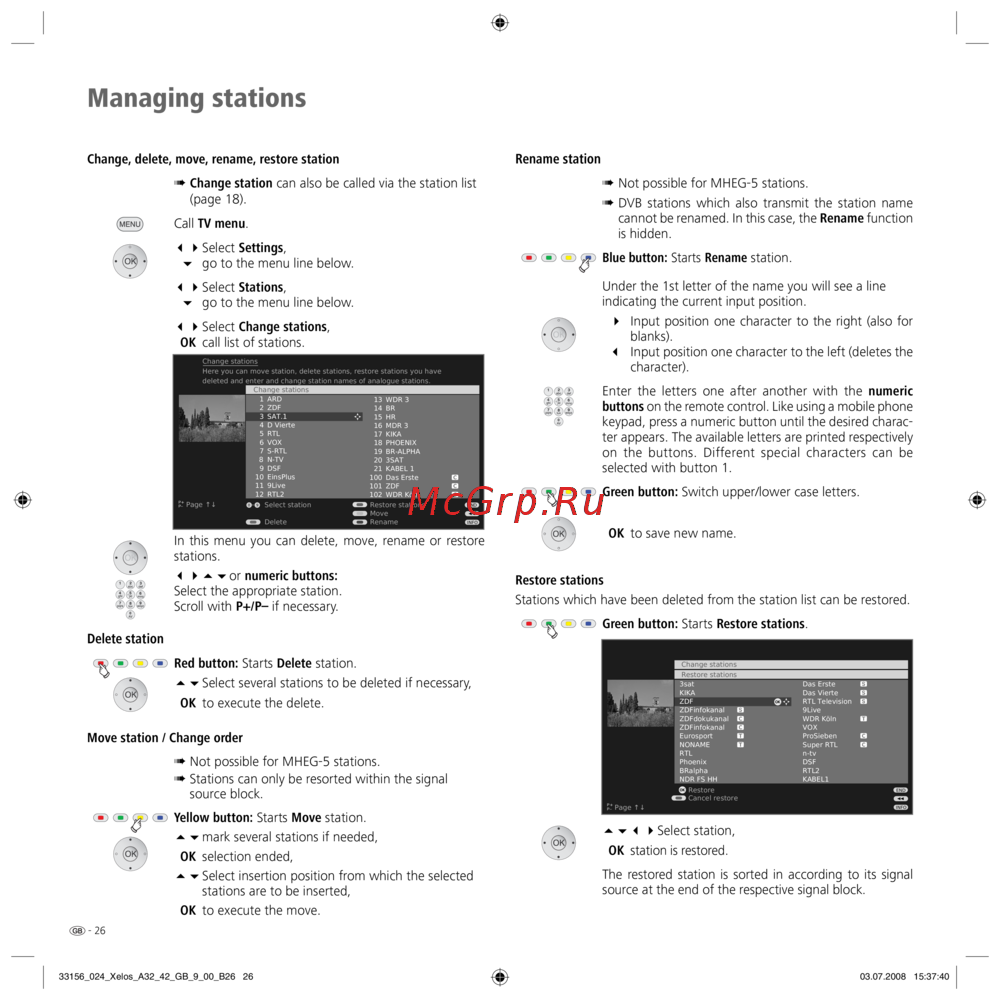 Loewe Xelos A 42 HD+ 100 — управление станциями: изменение, удаление и восстановление [26/66]