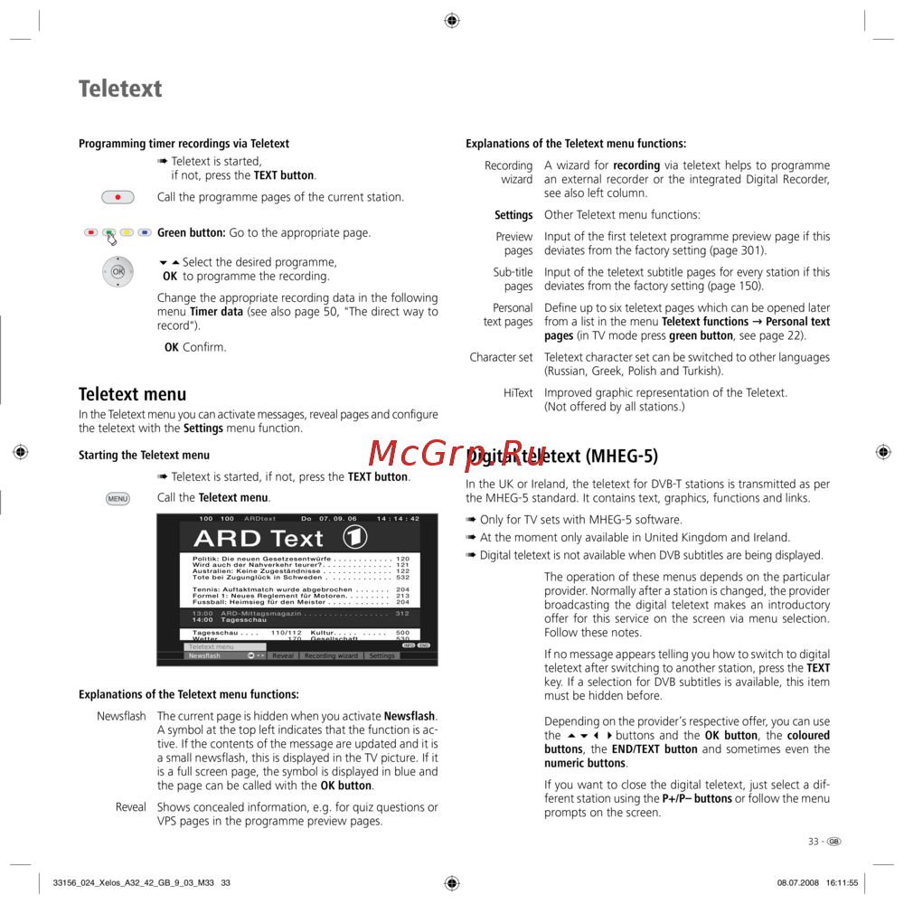 - Teletext menu p.33