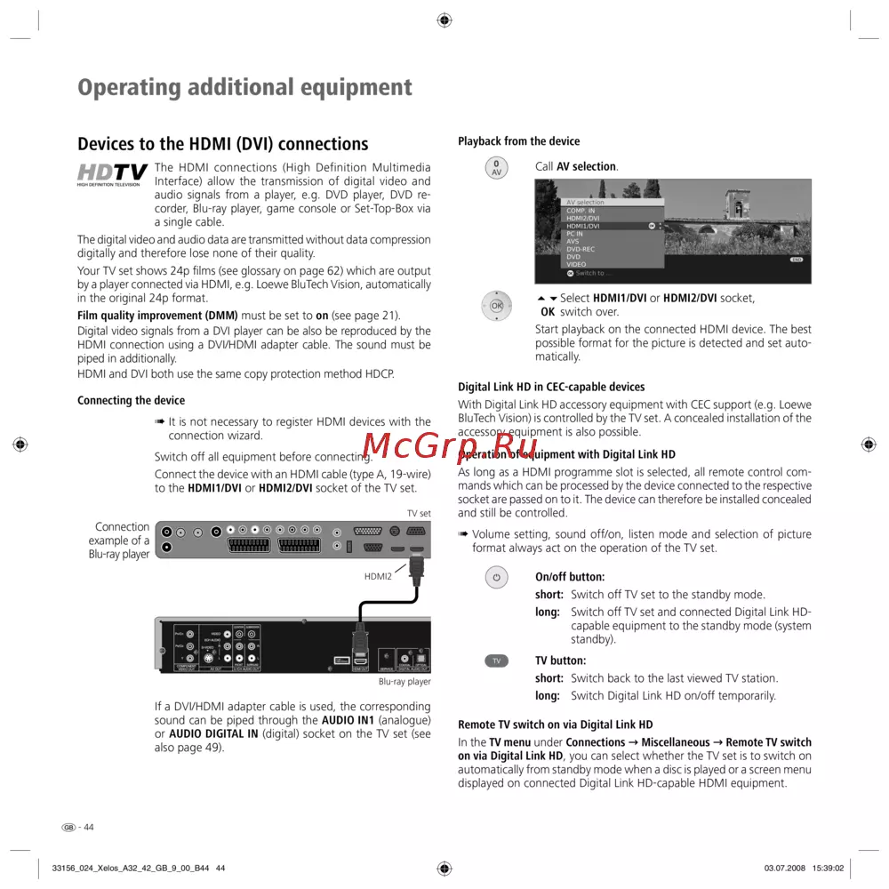 Loewe Xelos A 42 HD+ 100 — подключение и использование HDMI и DVI устройств к телевизору [44/66]