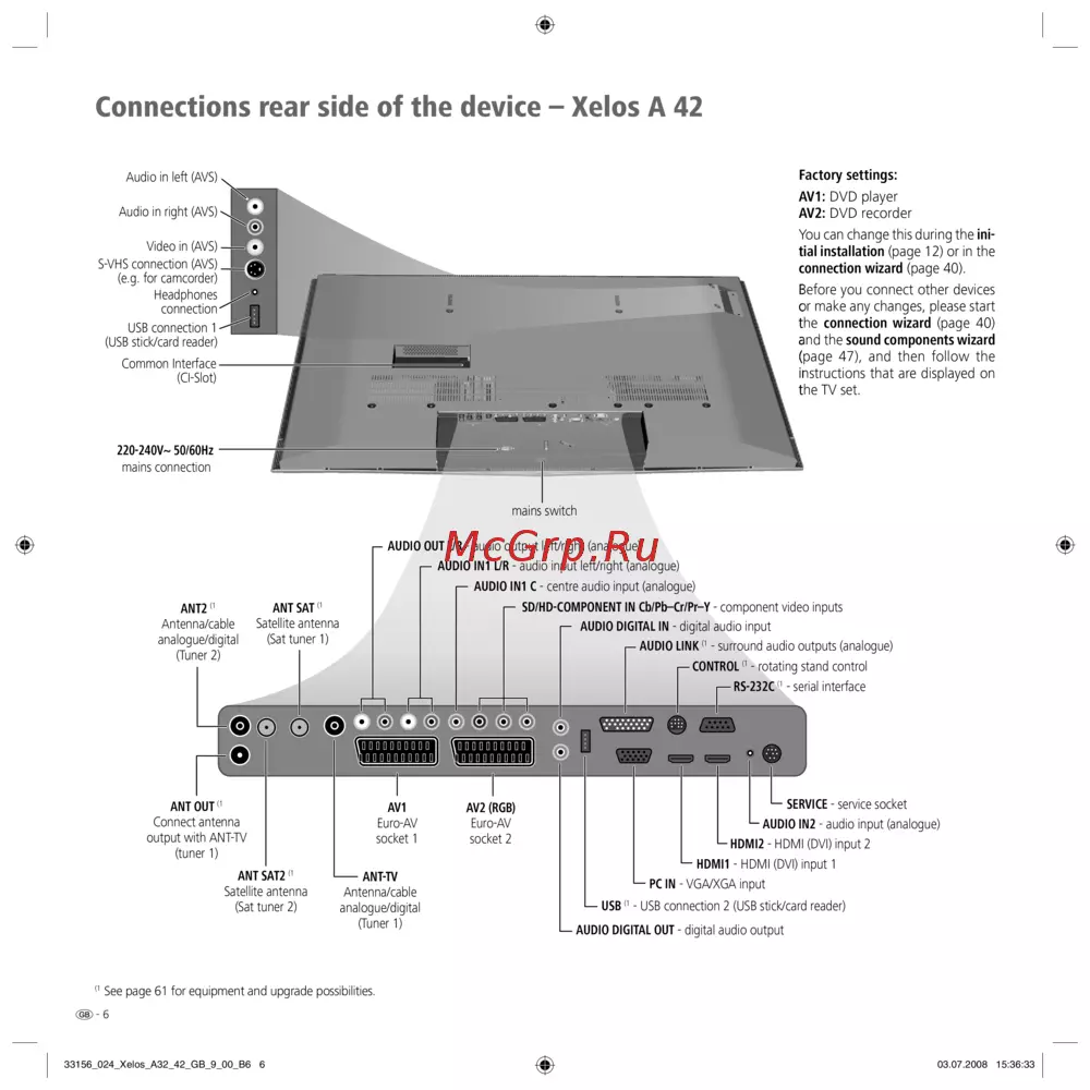 - New equipment should not be connected until it has been logged in in the connection wizard first dvd player on av1 and dvd recorder on av2 are preset at the factory p.40