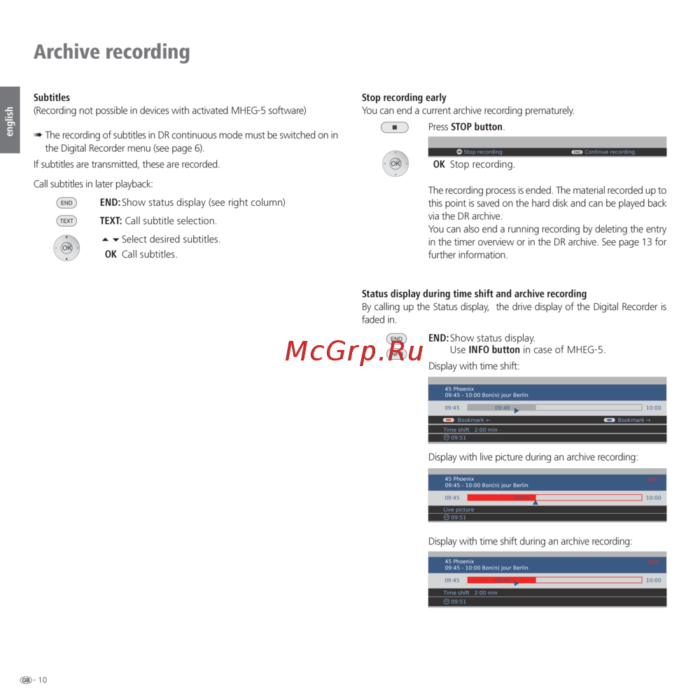 - Programming a timer recording via teletext not for mheg 5 stations p.12