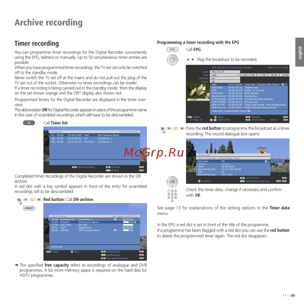 ![Loewe Digital Recorder + [11/22] In the epg a red dot is set in front of the title of the programme if a programme has been flagged with a red dot you can use the red button to delete the programmed timer again the red dot disappears](/views2/1020526/page11/bgb.png)