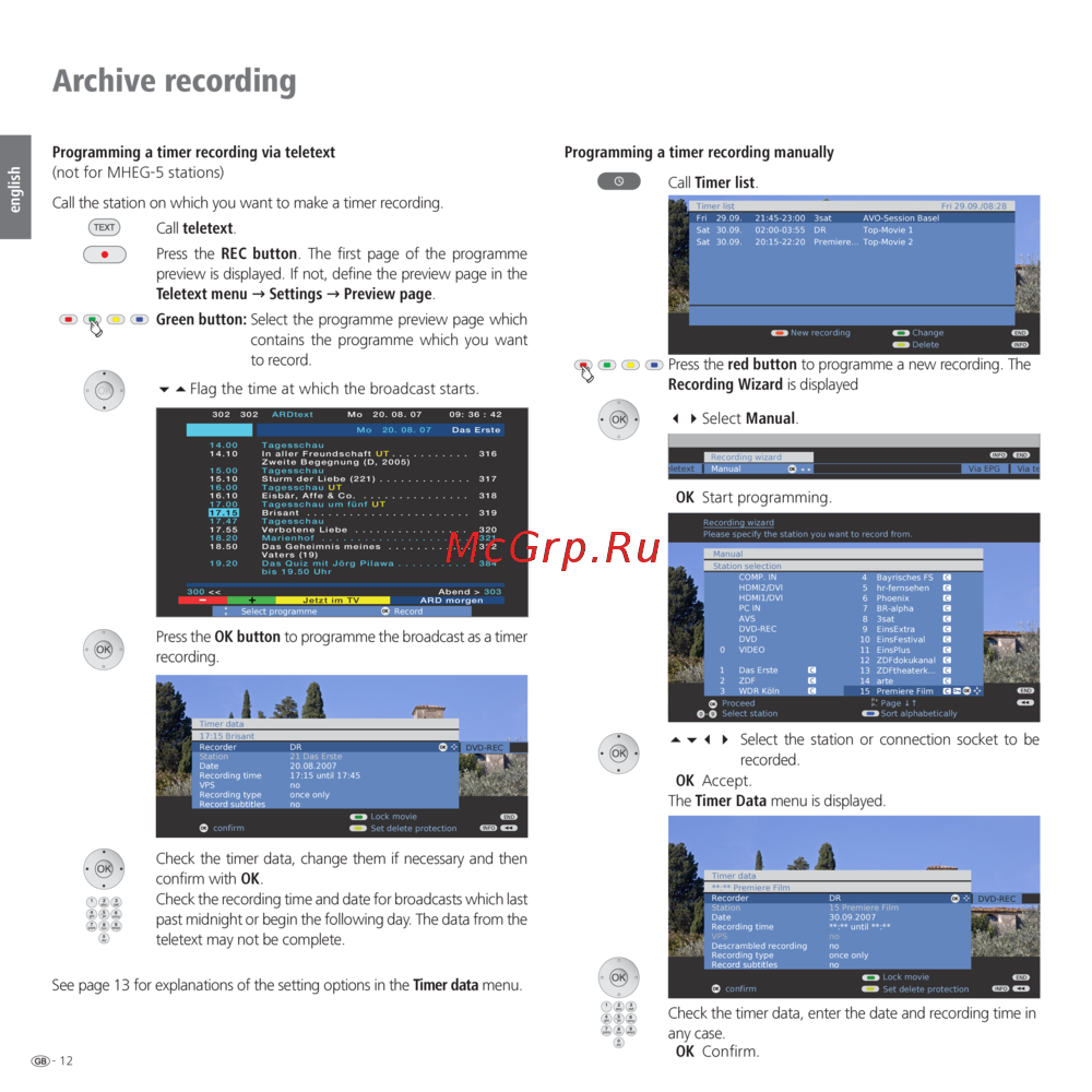 Loewe Digital Recorder + [12/22] Check the timer data enter the date and recording time in any case ok confirm