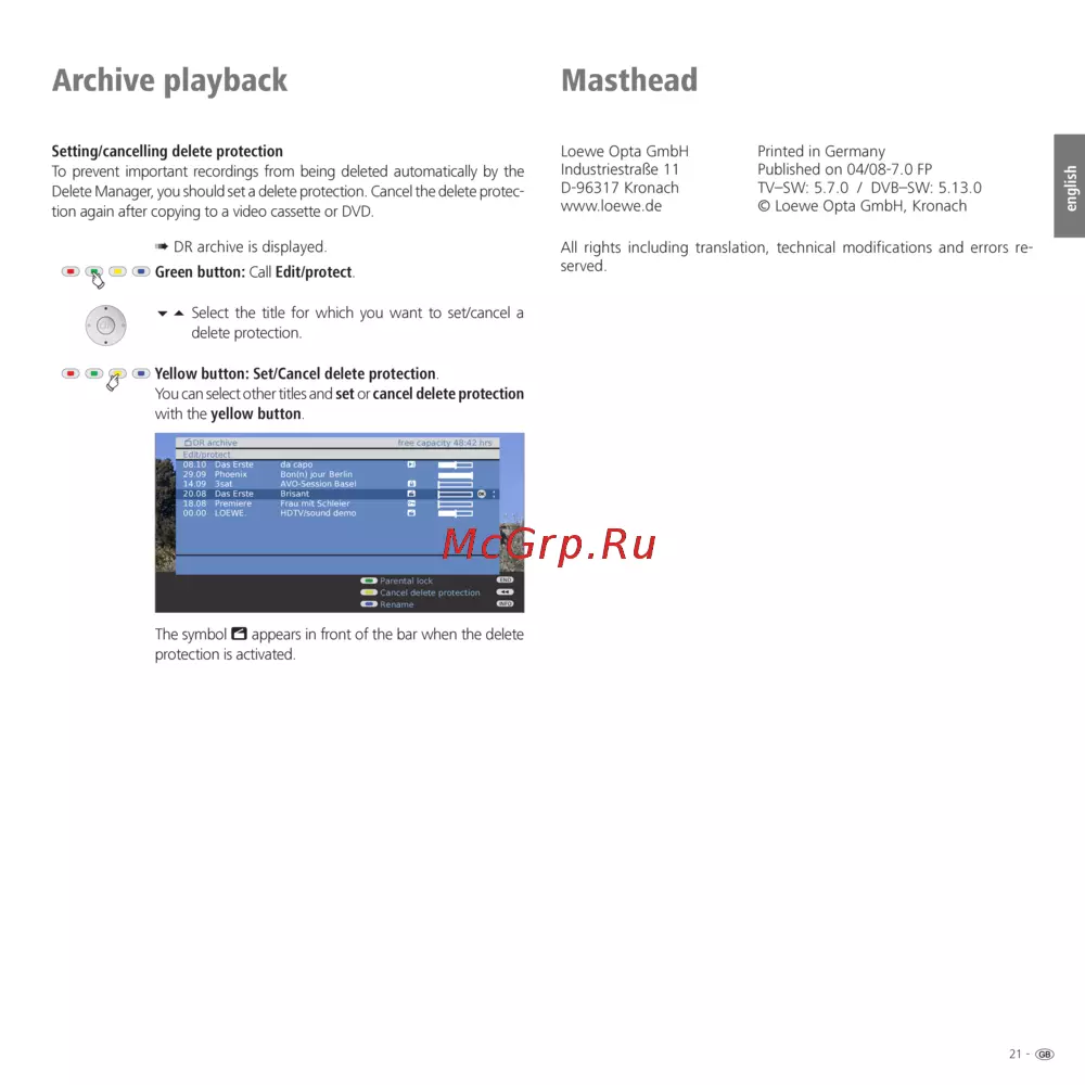 Loewe Digital Recorder + — как установить и отменить защиту от удаления записей [21/22]