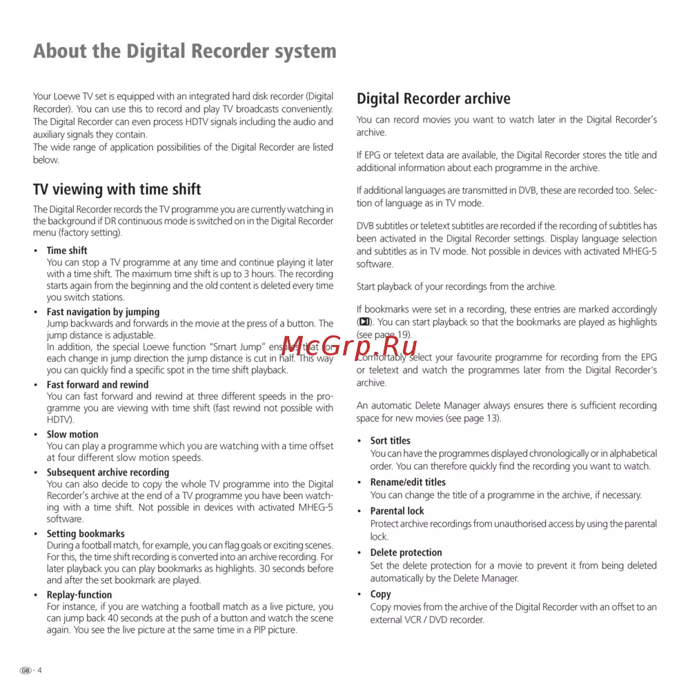 Узнайте о возможностях цифрового рекордера для записи и воспроизведения ТВ-программ. Включает функции временного сдвига, быстрой навигации и архивирования.