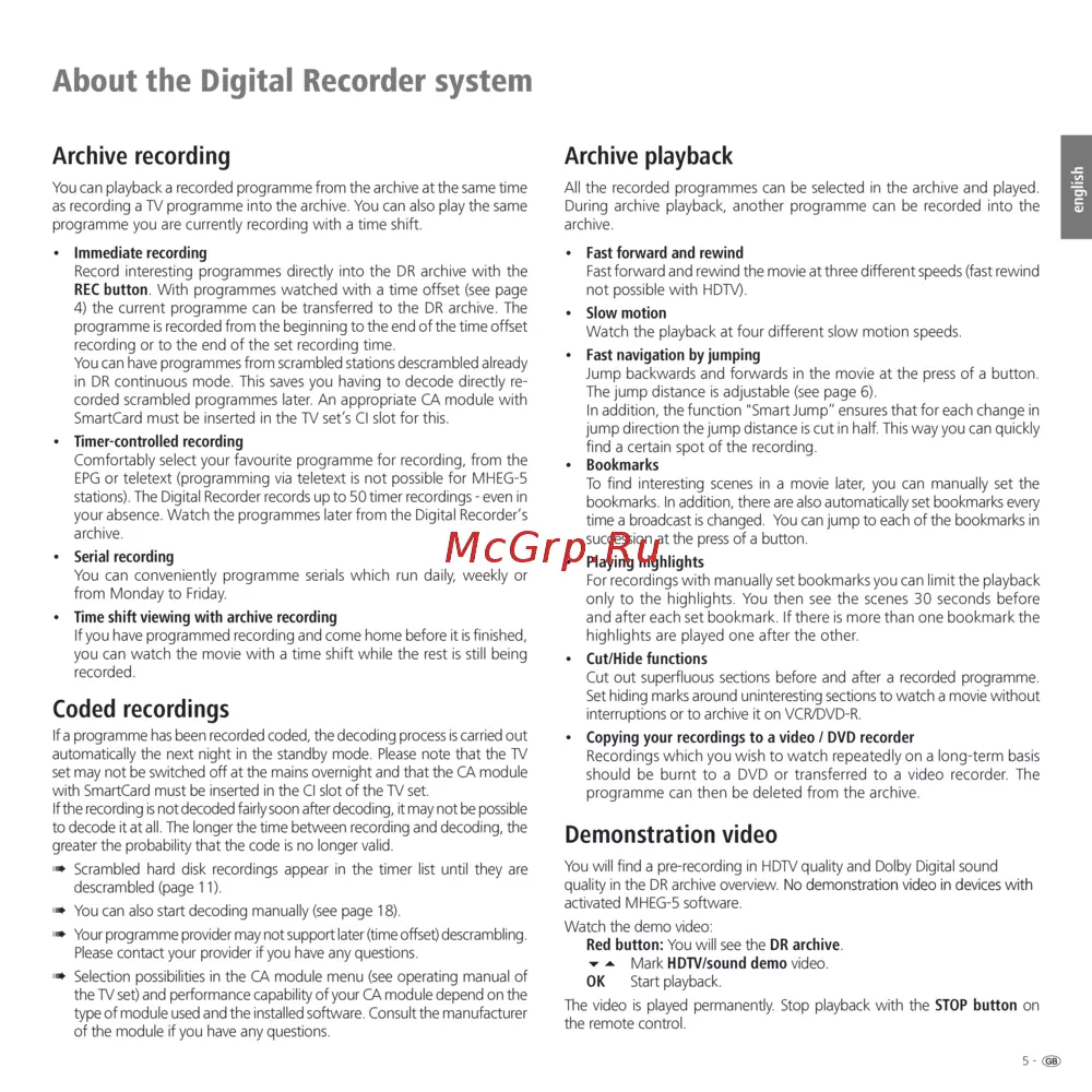 You will nd a pre-recording in HDTV quality and Dolby Digital sound