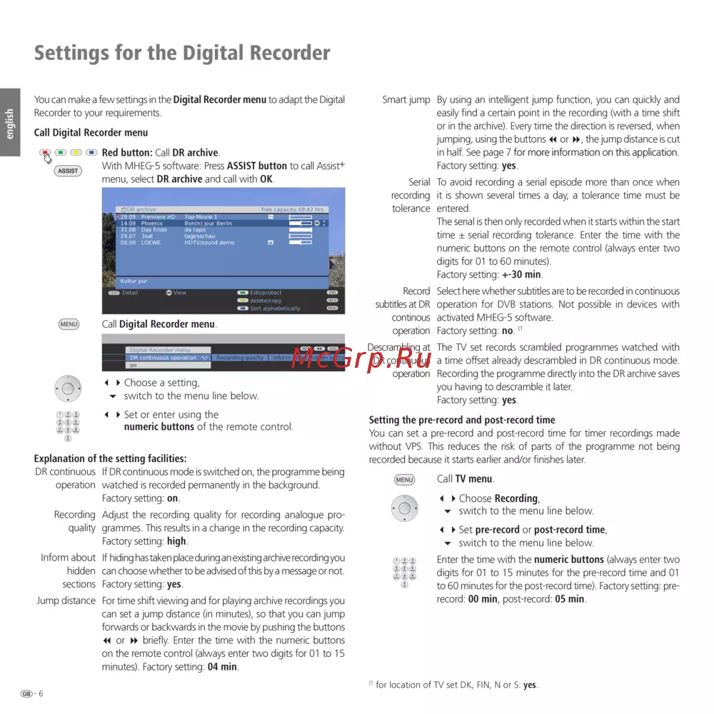 - Enter your secret code with the numeric buttons of the remote control when you set the secret code for the first time you need to make a careful note of it the dr archive opens again p.20
