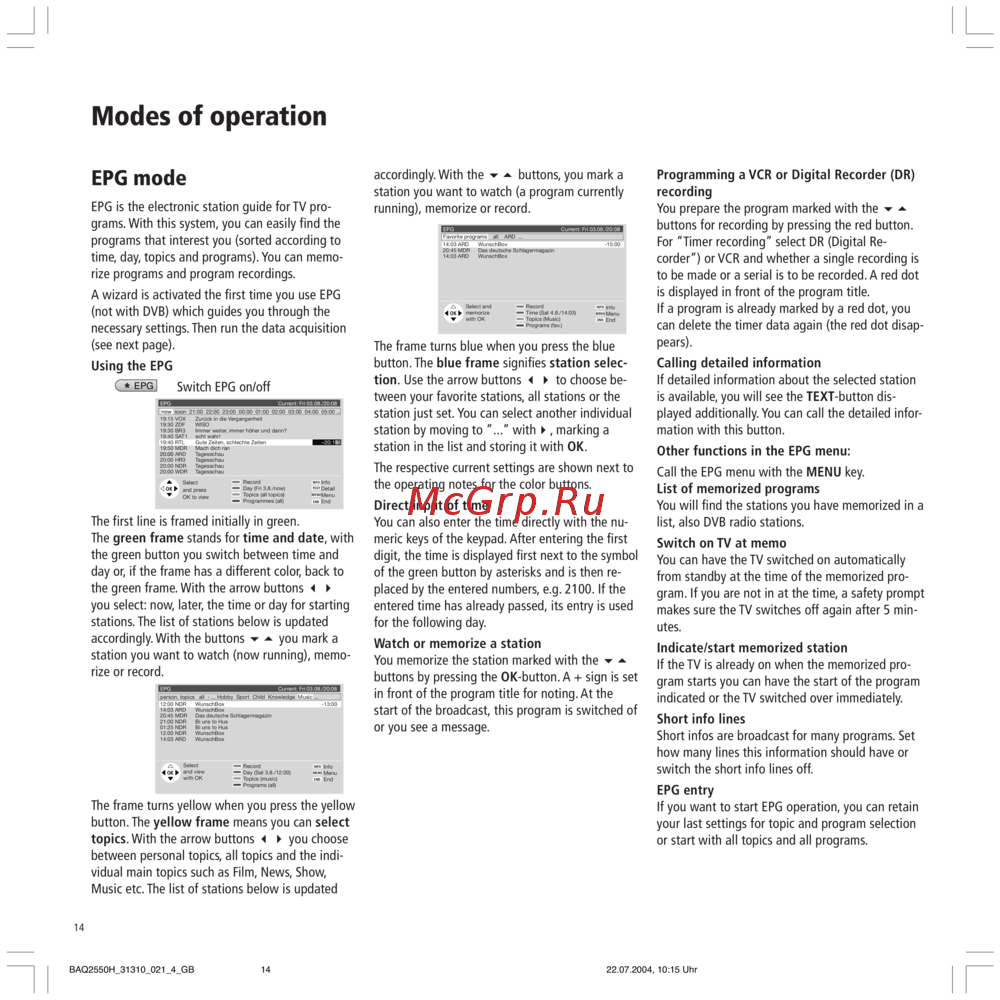 - Epg mode p.14