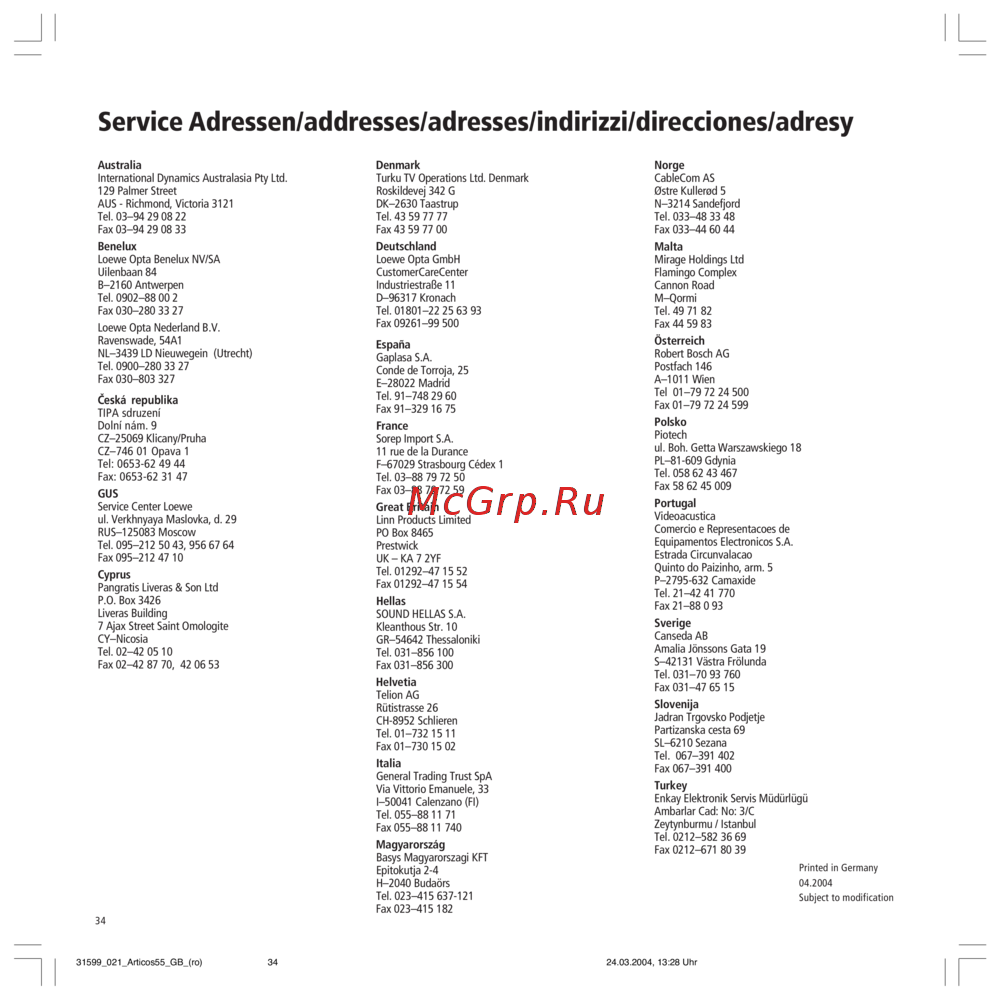 Loewe Articos 55 — контактная информация сервисных центров по странам [34/40]