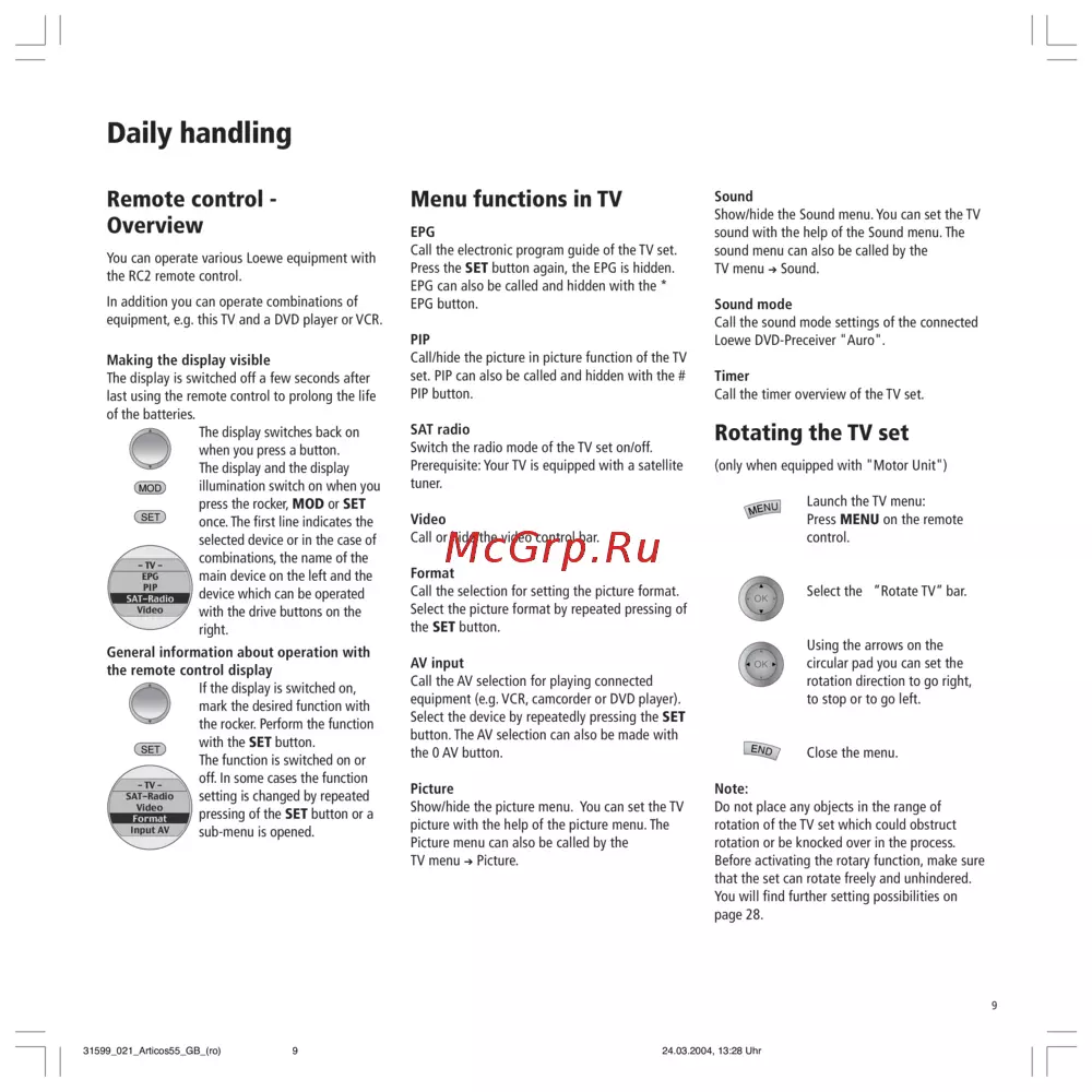 ![Loewe Articos 55 [9/40] Rotating the tv set](/views2/1020543/page9/bg9.png)