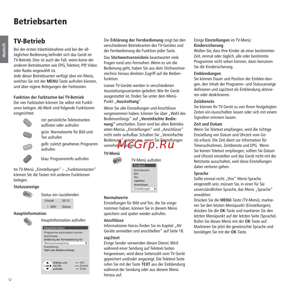 anderen Be triebs ar ten wie EPG, Teletext, PIP, Video