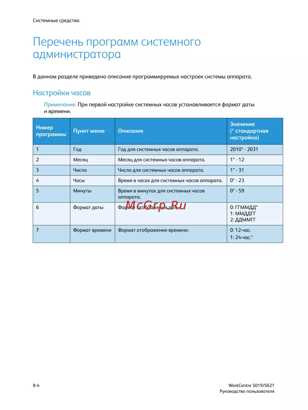 Xerox WorkCentre 5019 [106/188] Примечание при первой настройке системных часов устанавливается формат даты и времени
