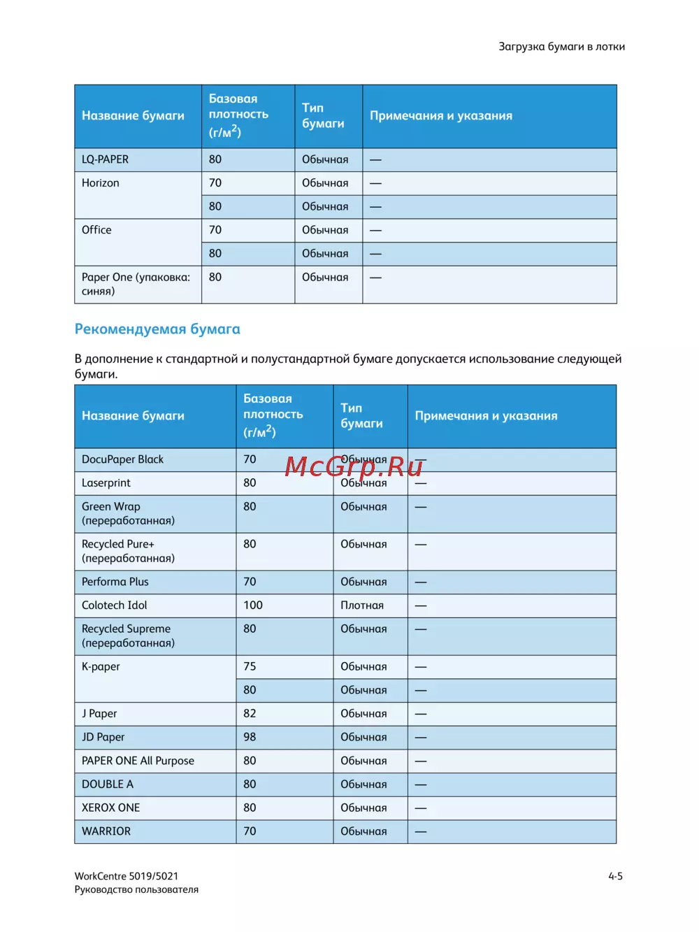Xerox WorkCentre 5019 [53/188] Рекомендуемая бумага