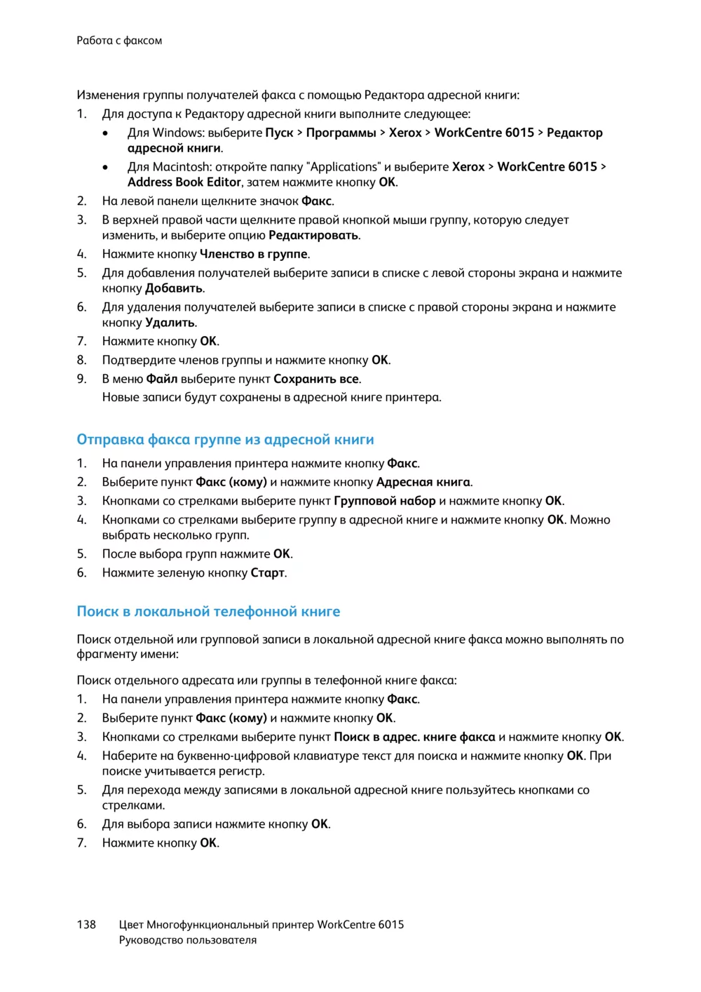 Xerox WorkCentre 6015N [138/218] Поиск в локальной телефонной книге
