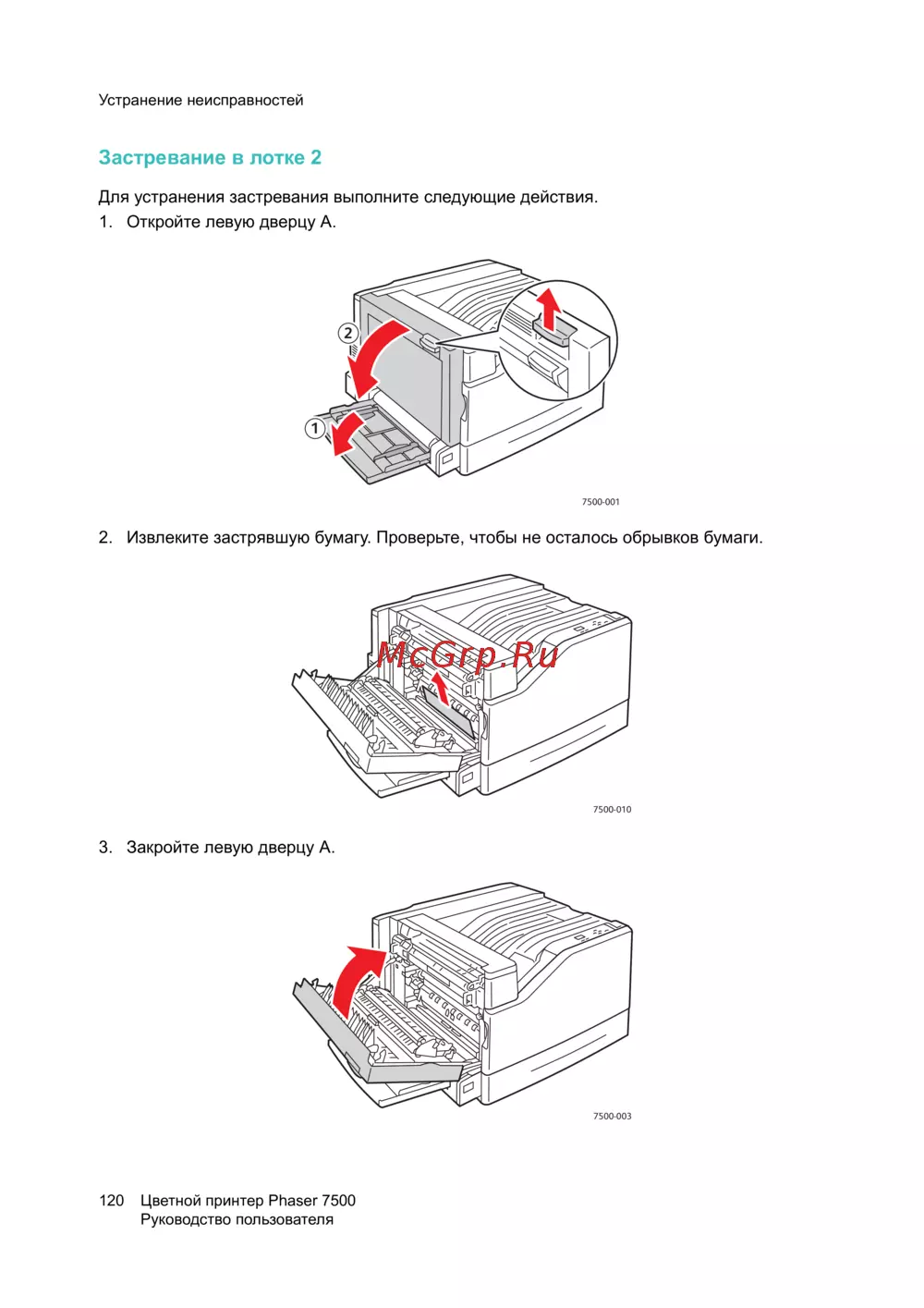 Xerox Phaser 7500N [120/172] Застревание в лотке 2