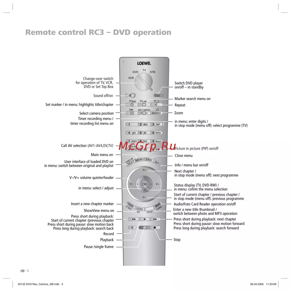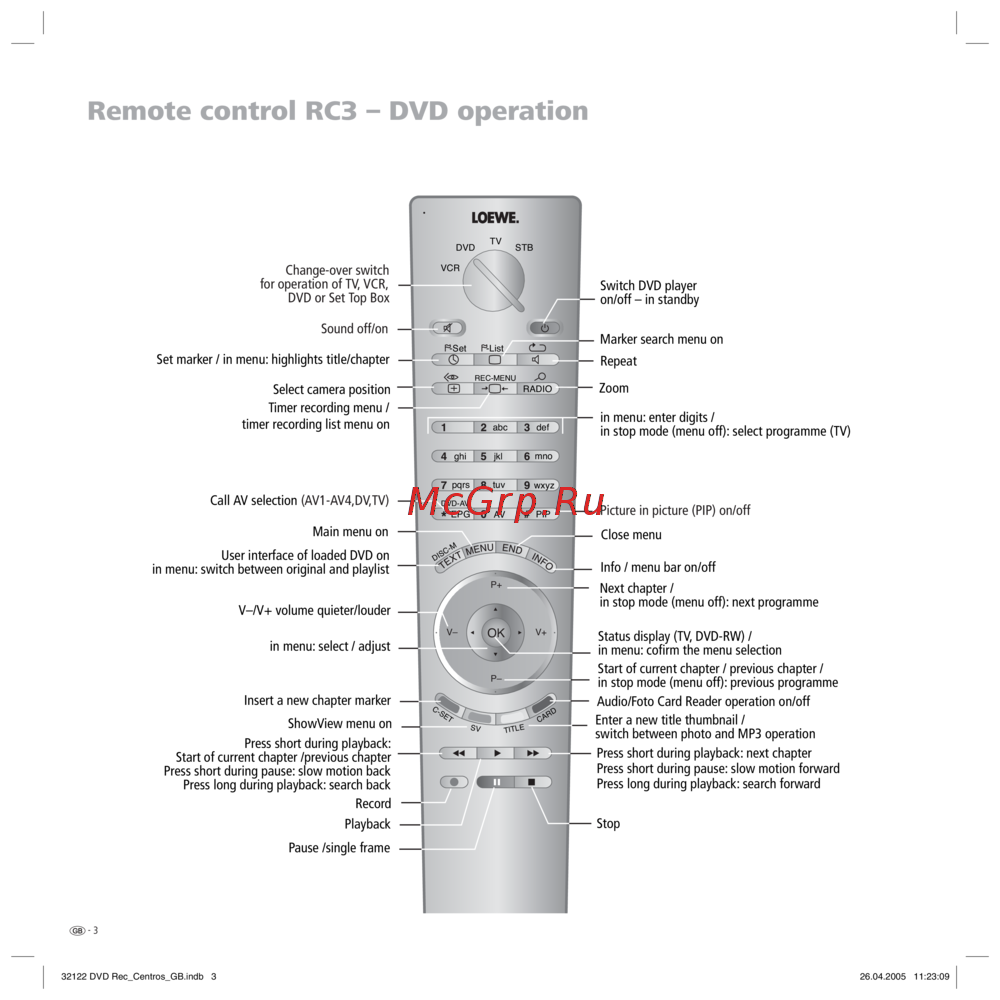 Loewe Centros 1102 [3/70] Remote control rc3 dvd operation
