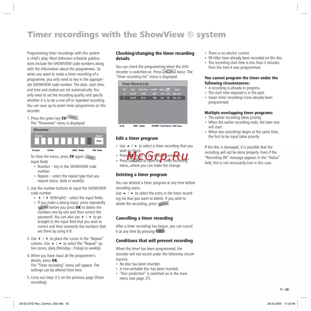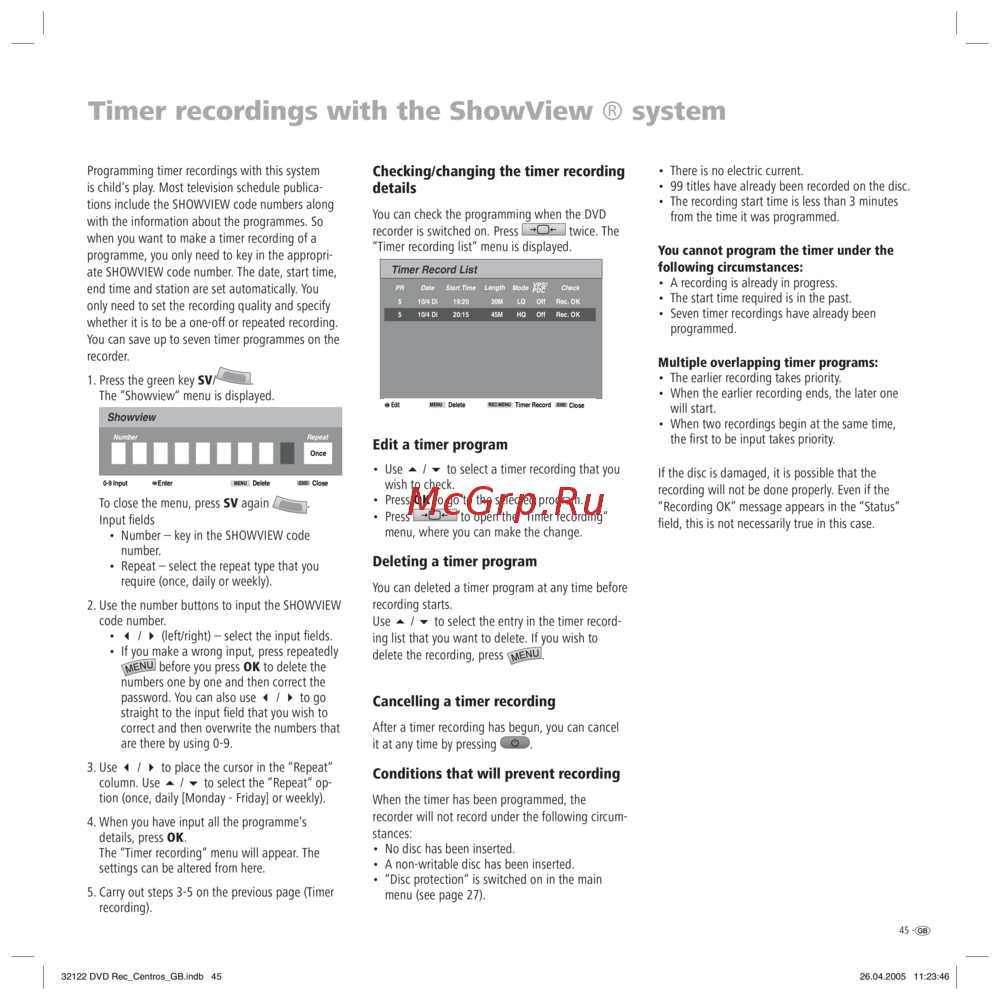 Loewe Centros 1102 — программирование таймеров для записи на видеорегистраторе [45/70]
