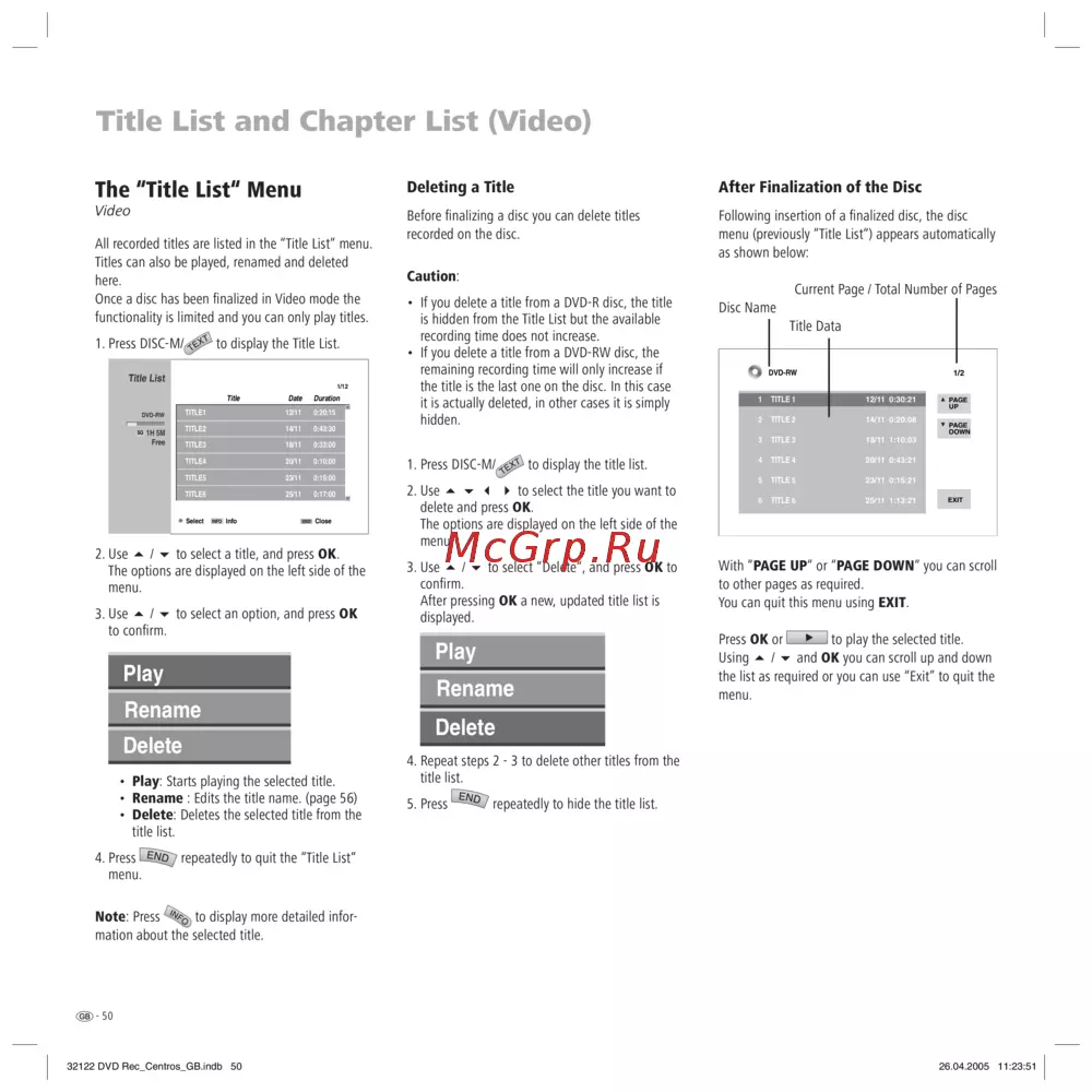 Before fi nalizing a disc you can delete titles