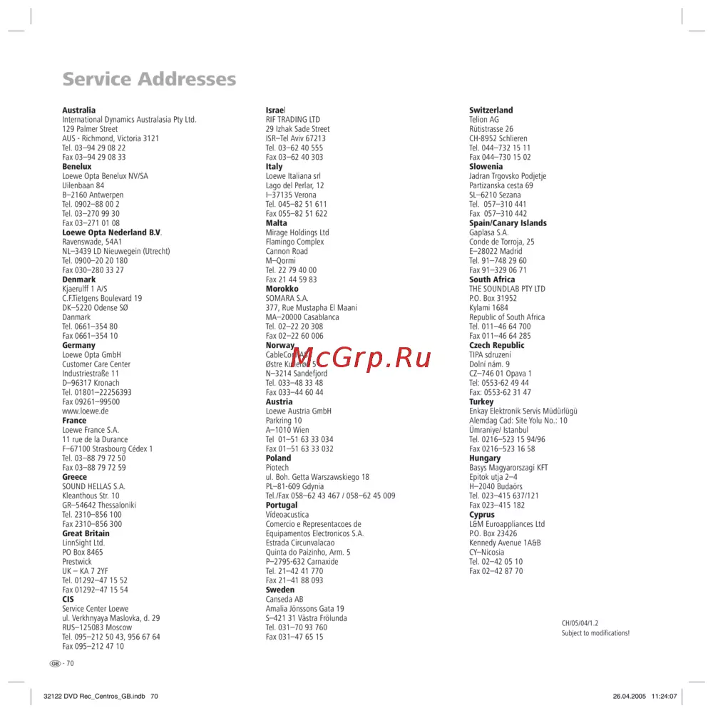 Loewe Centros 1102 — контактная информация международных компаний по электронике [70/70]