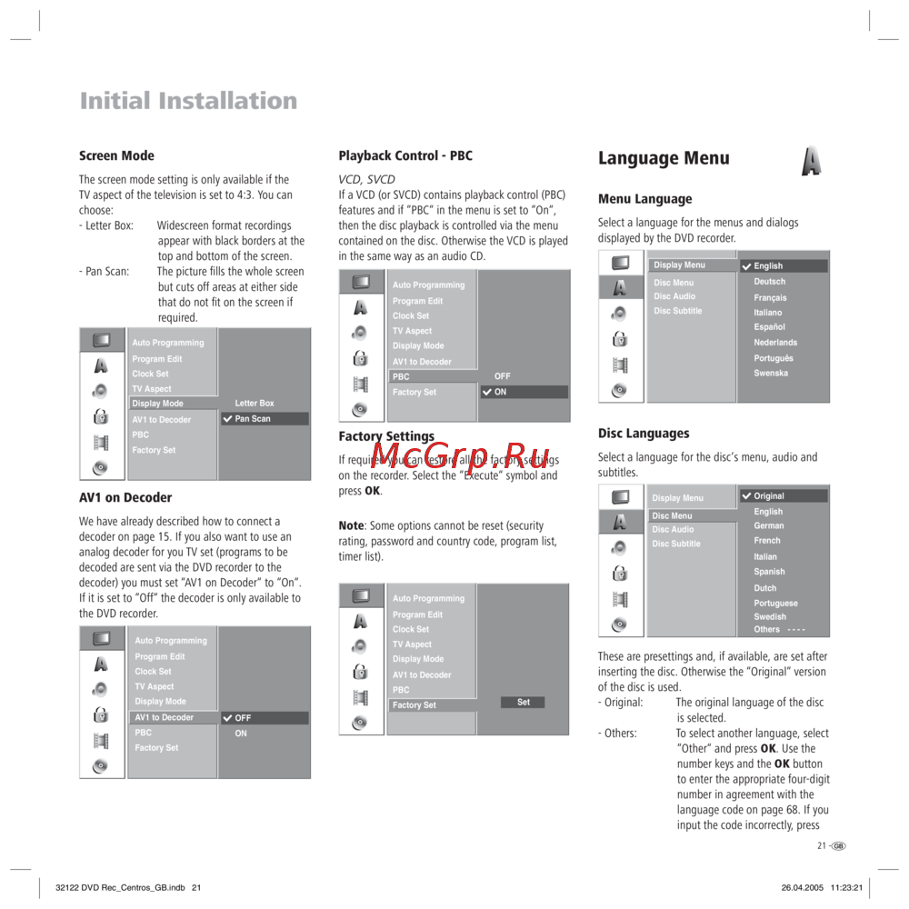 32122 DVD Rec_Centros_GB.indb 21 32122 DVD Rec_Centros_GB.indb 21 26.04.2005 11:23:2126.04.2005 11:23:21