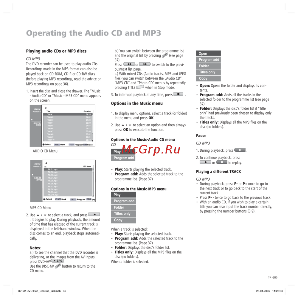 (before playing MP3 recordings, read the advice on