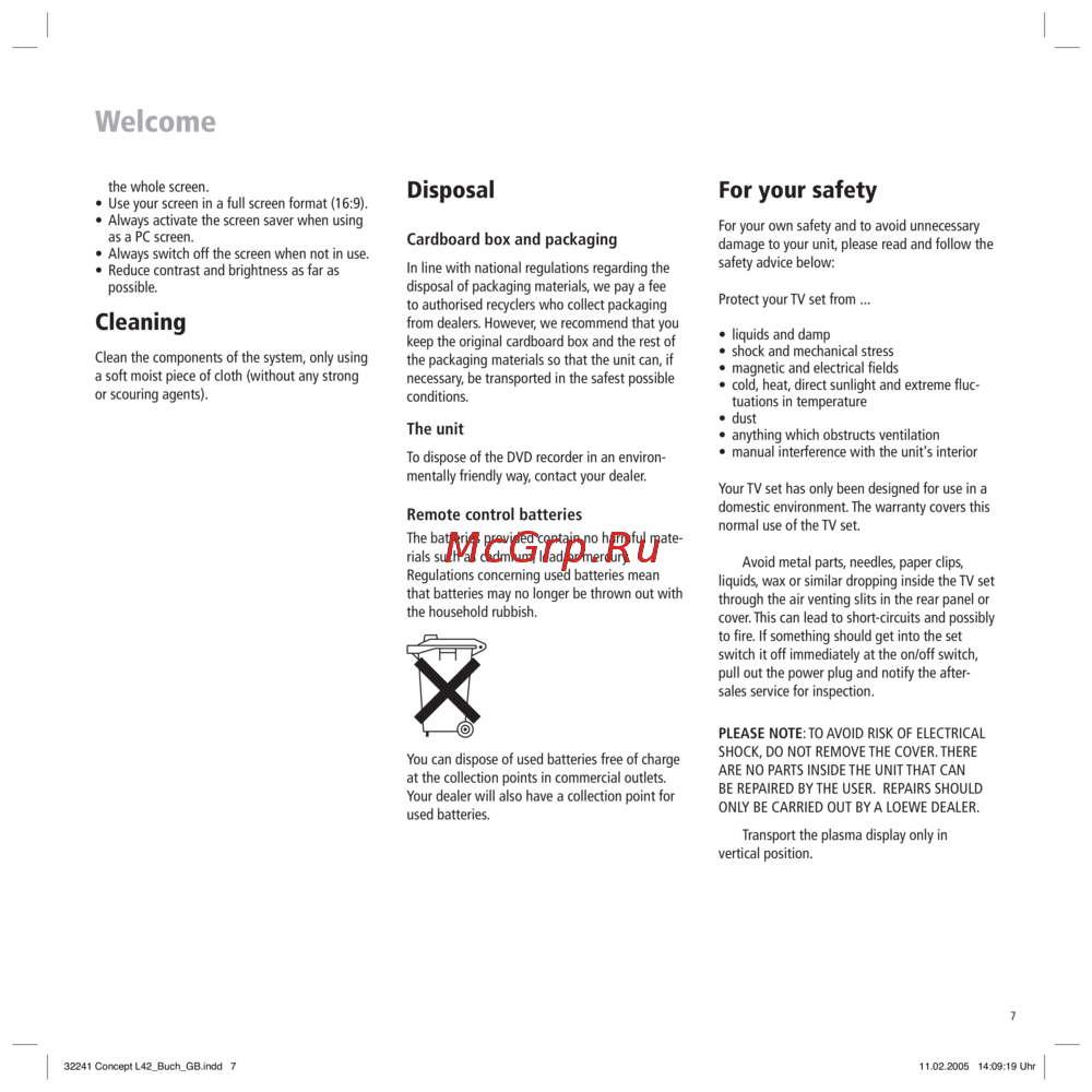 Loewe Concept L42 — рекомендации по использованию и уходу за экраном и устройствами [7/24]