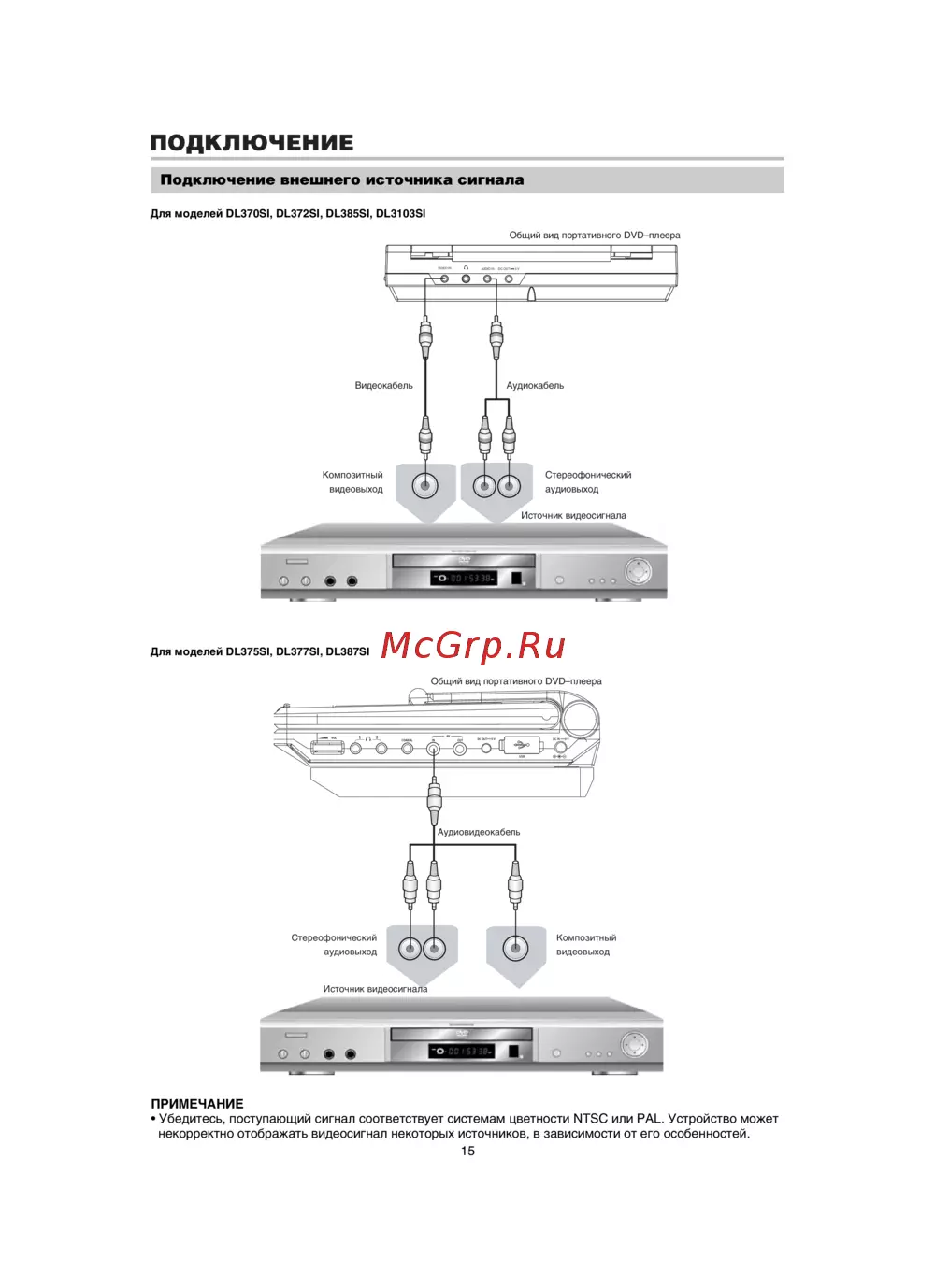 - Примечание убедитесь поступающий сигнал соответствует системам цветности ntsc или pal устройство может некорректно отображать видеосигнал некоторых источников в зависимости от его особенностей p.17