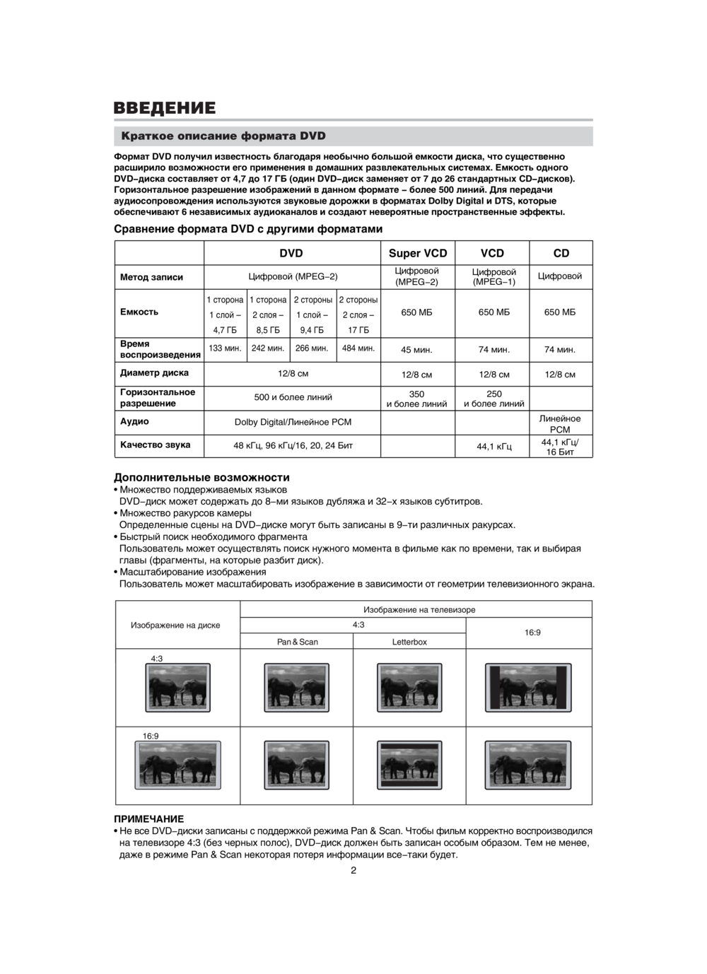 - Множество поддерживаемых языков dvd диск может содержать до 8 ми языков дубляжа и 32 х языков субтитров множество ракурсов камеры определенные сцены на dvd диске могут быть записаны в 9 ти различных ракурсах быстрый поиск необходимого фрагмента пользователь может осуществлять поиск нужного момента в фильме как по времени так и выбирая главы фрагменты на которые разбит диск масштабирование изображения пользователь может масштабировать изображение в зависимости от геометрии телевизионного экрана p.4