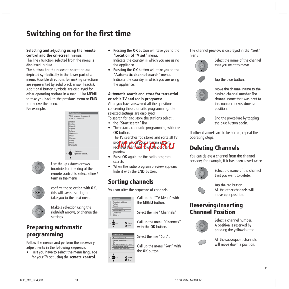 - Operating the tv set p.26