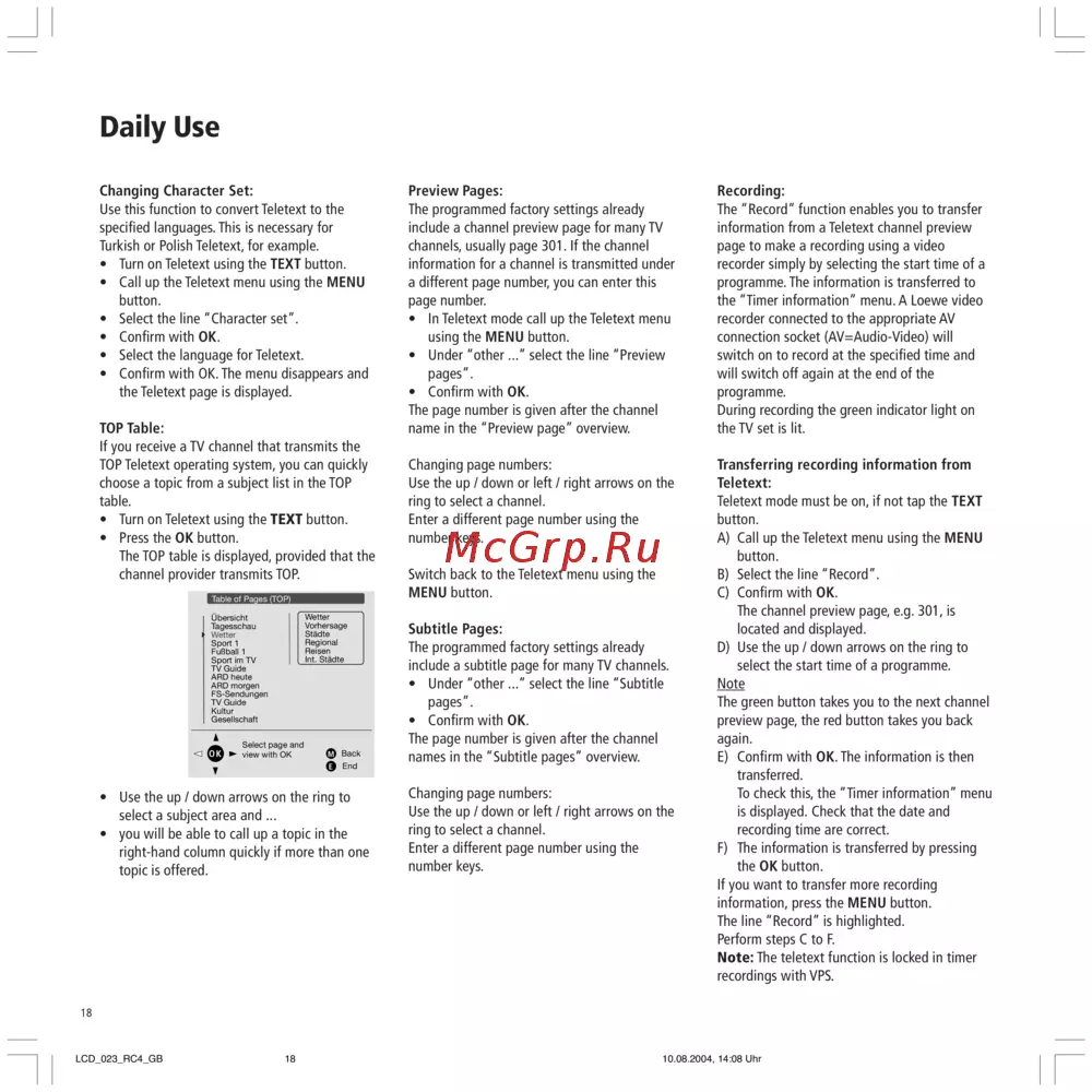 - Teletext mode p.16