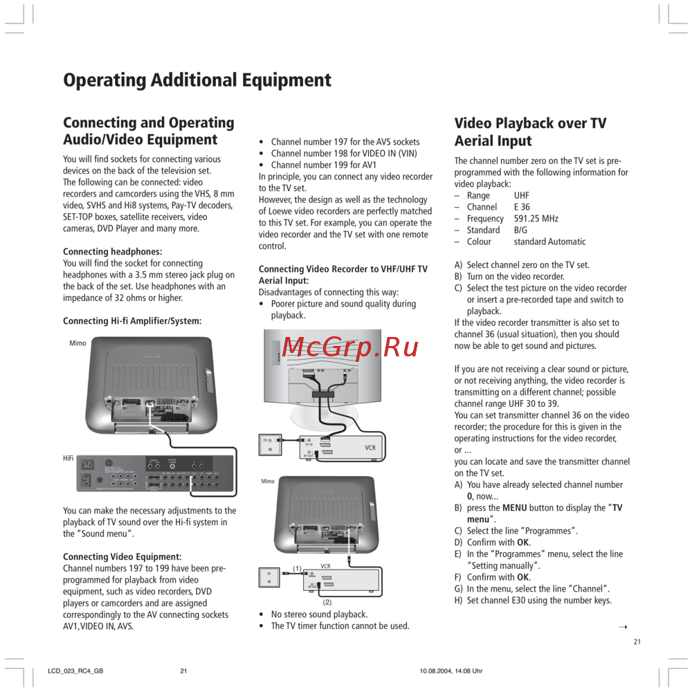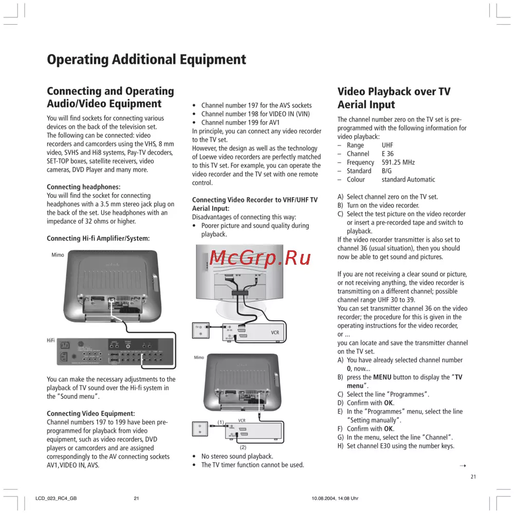 - Video playback over tv aerial input p.21