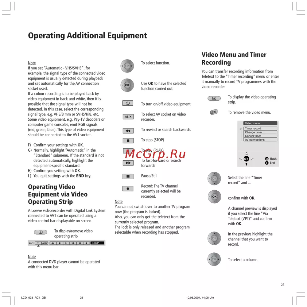 - Operating loewe video recorders and loewe dvd players directly you can switch over the remote control of the tv set to operate loewe video recorders and loewe dvd players these devices can be operated directly or in the case of equipment installed in a concealed place by the tv set in this case the digital link function of the vcr and of the dvd player must be switched on p.26