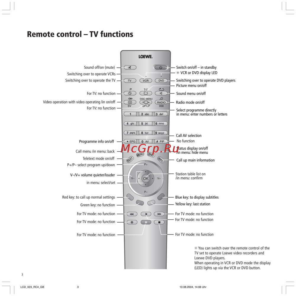 - Functions for loewe dvd players in dvd mode the following dvd players can be operated xemix 6122do 8122da und 6222ps p.26