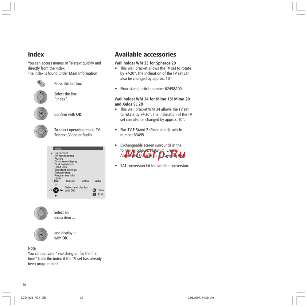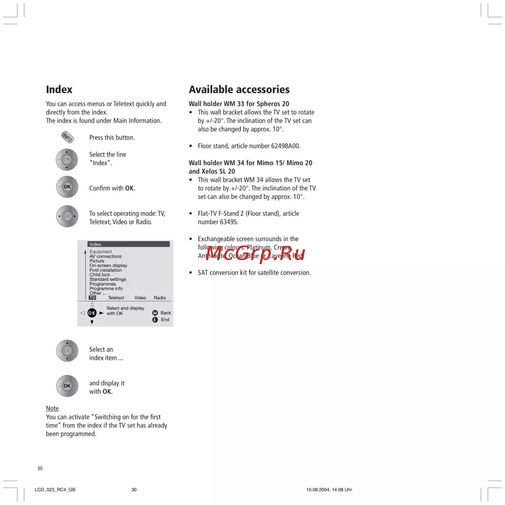 Loewe Spheros 20 — управление телевизором: доступ к меню и телетексту [30/32]