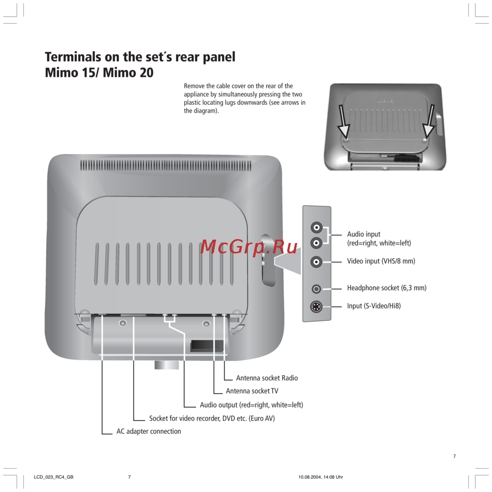 - Terminals on the set s rear panel mimo 15 mimo 20 p.7