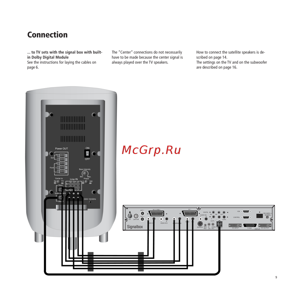 - To tv sets with the signal box with built in dolby digital module see the instructions for laying the cables on page 6 p.9