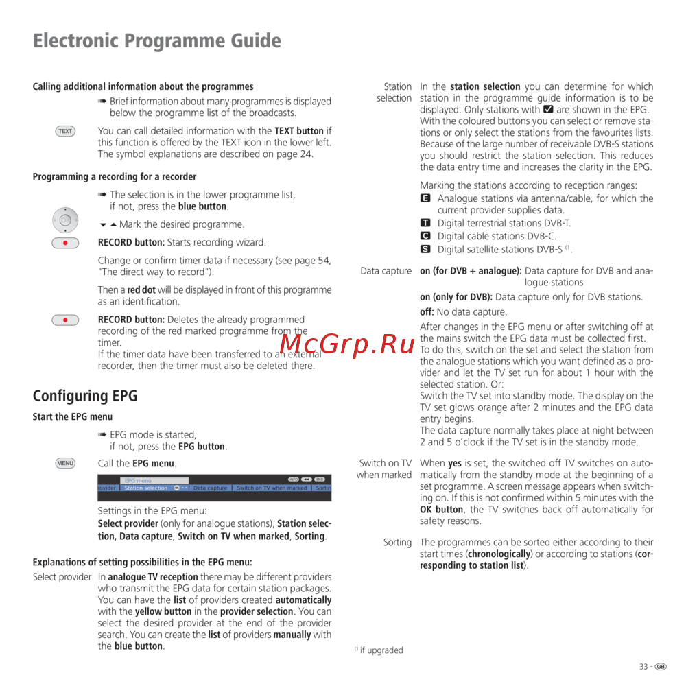 displayed. Only stations with are shown in the EPG.