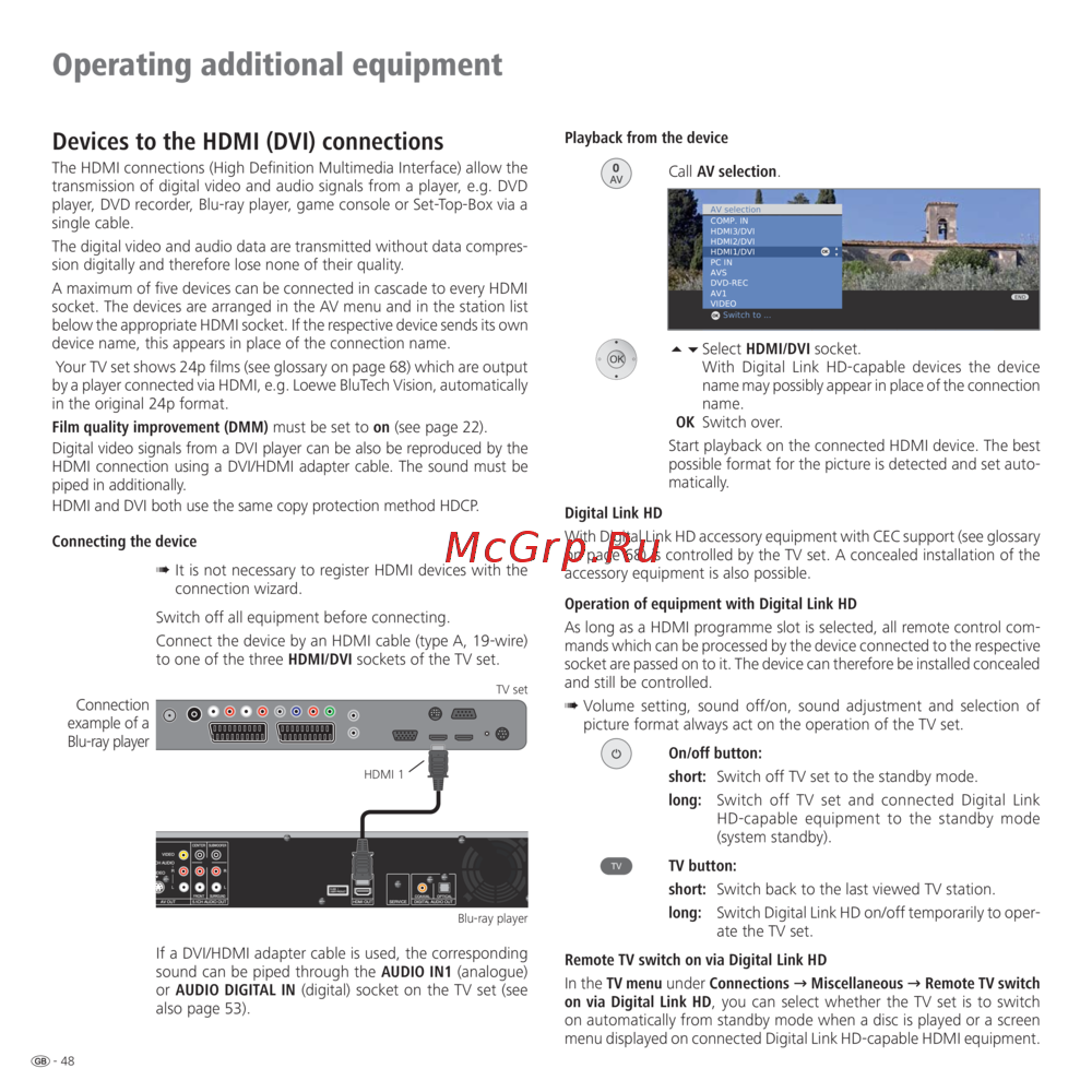 Loewe Art 37 SL Full-HD+ 100 — подключение дополнительных устройств через HDMI и DVI [48/72]