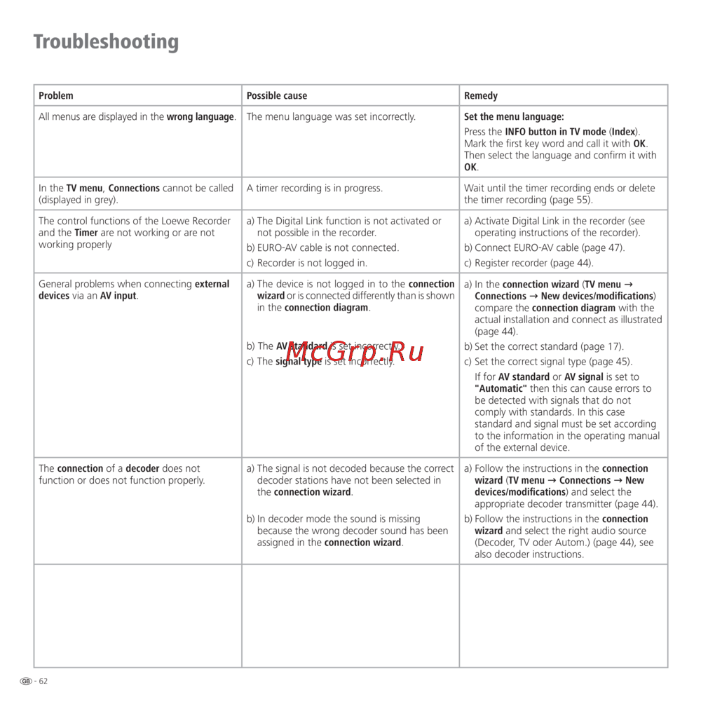 Loewe Art 37 SL Full-HD+ 100 [62/72] Troubleshooting