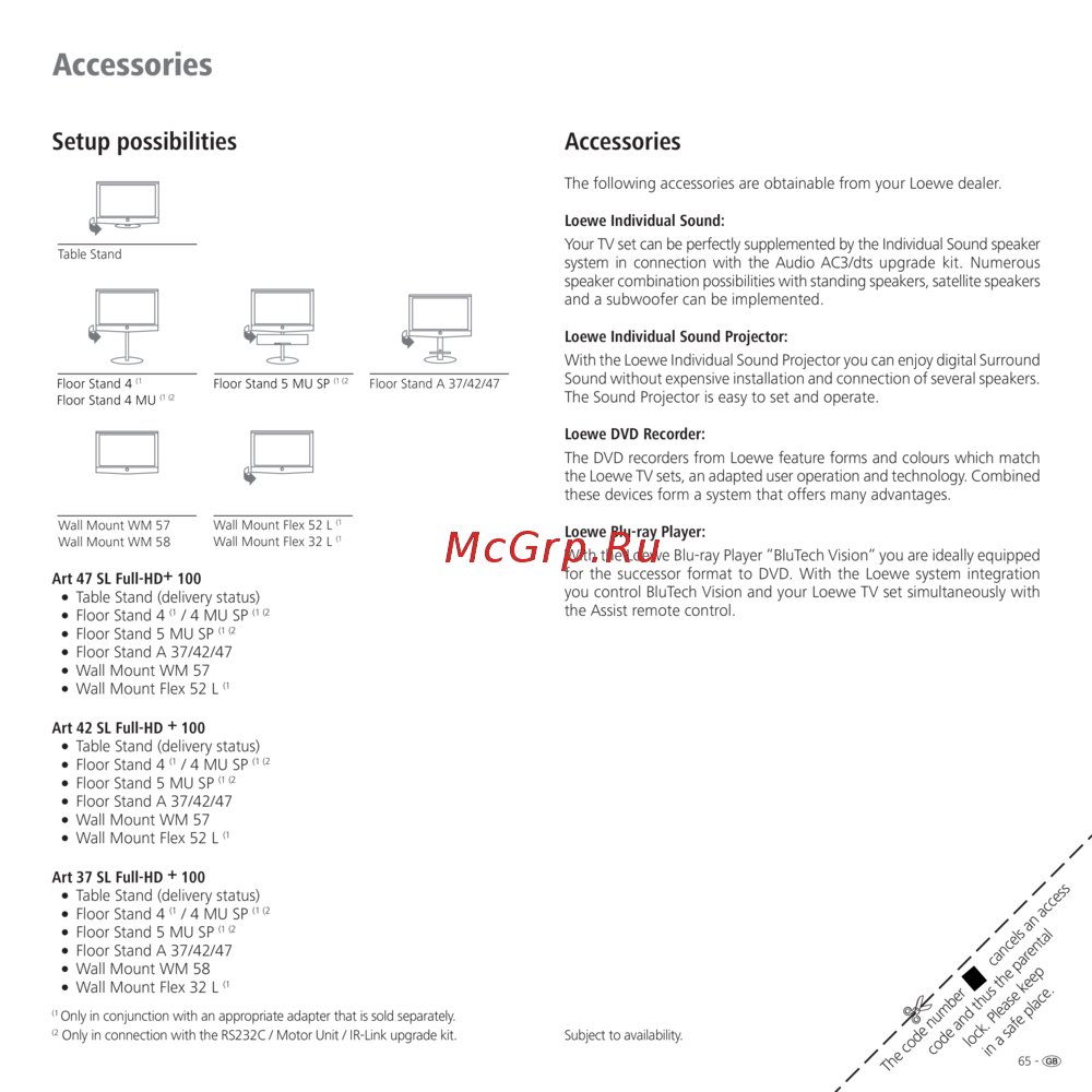 The following accessories are obtainable from your Loewe dealer.