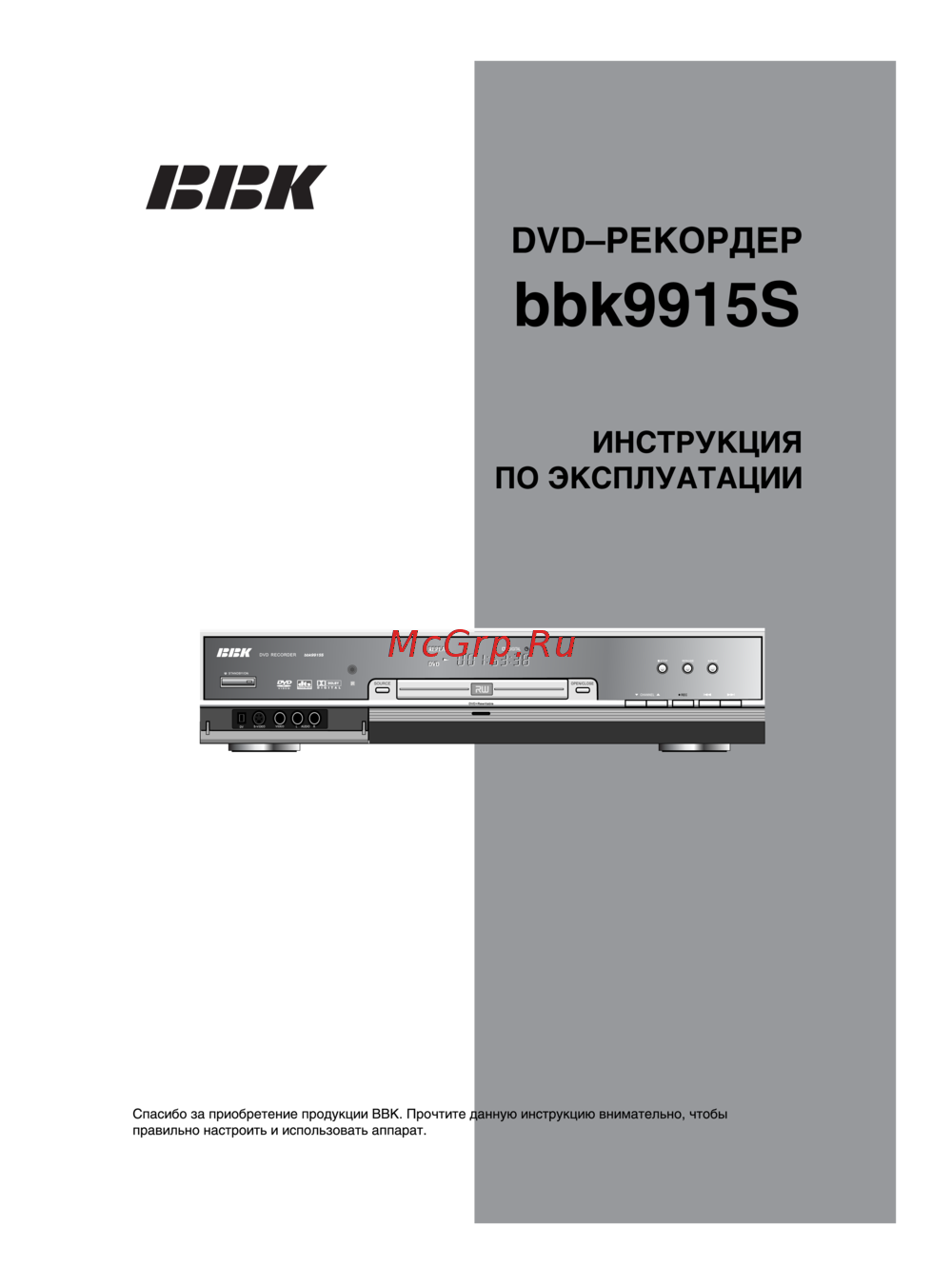 ккк ОУО РЕКОРДЕР ЬЬк99158 ИНСТРУКЦИЯ ПО ЭКСПЛУАТАЦИИ Спасибо за приобретение продукции ВЕЗК Прочтите данную инструкцию внимательно чтобы правильно настроить и использовать аппарат